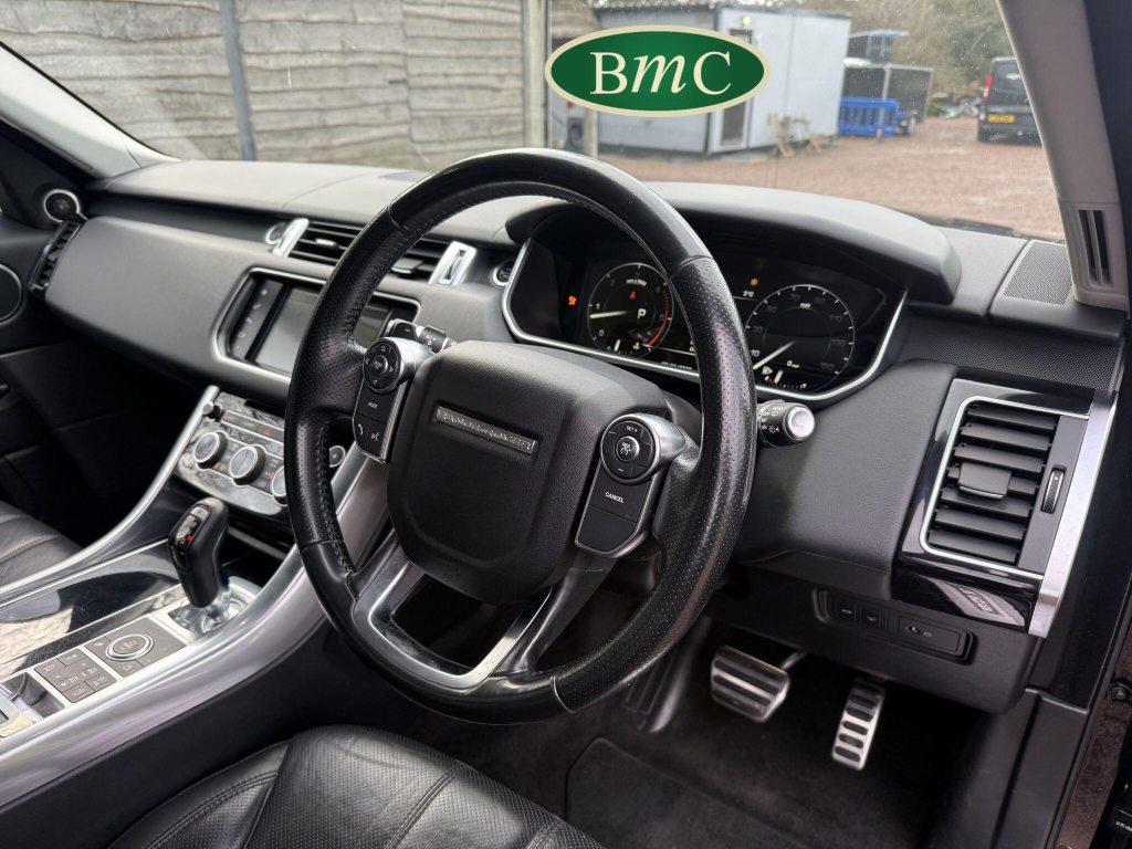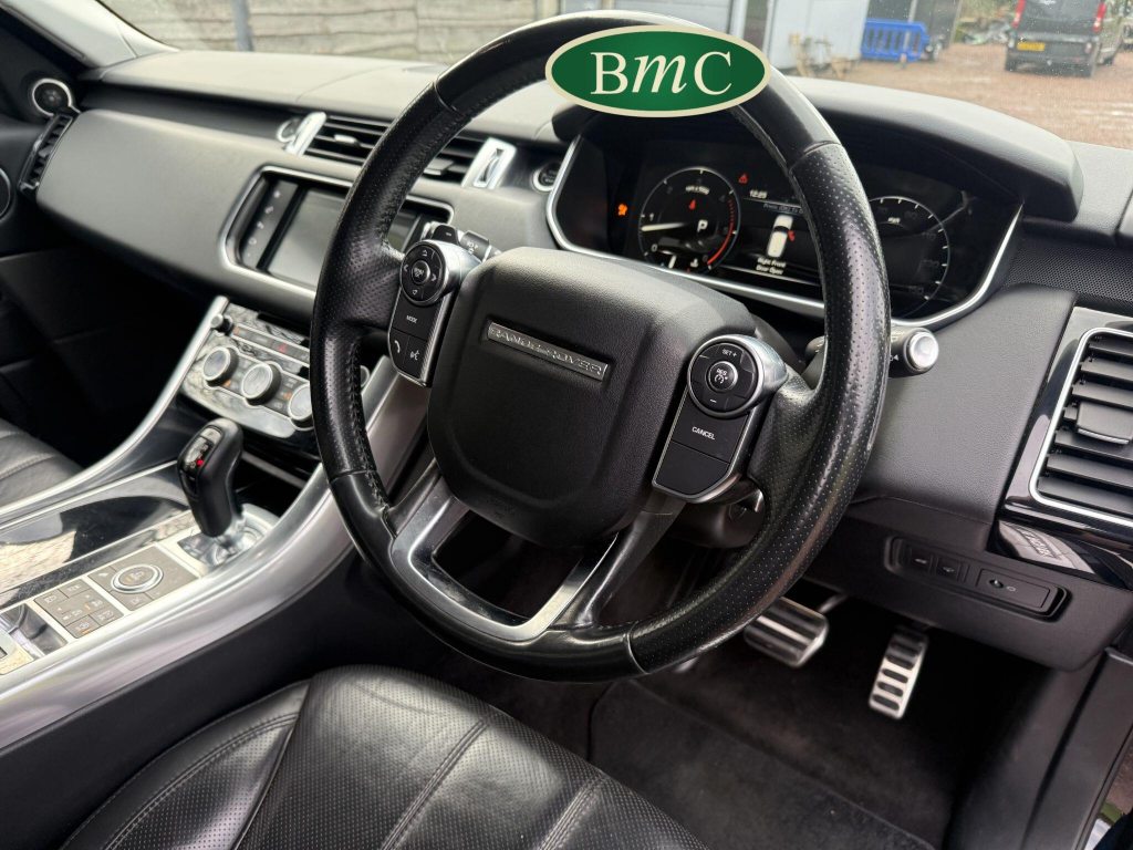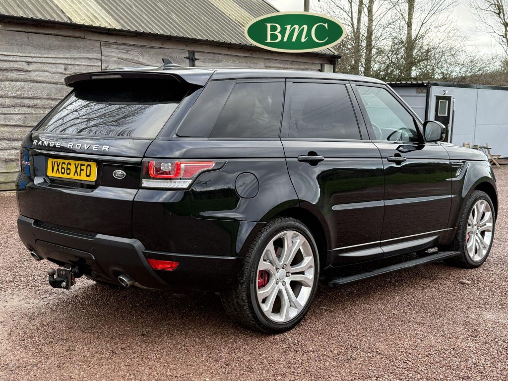 SERVICED @ 6K, 12K, 16K, 20K, 23K, 28K, 56K, 68K & 80K MILES. JUST SERVICED. 2 OWNERS FROM NEW, 1ST OWNER FOR 7 YEARS, LAST OWNER 2 YEARS. 22'' SPECIAL CHROME EFFECT ALLOY WHEELS WITH CONTINENTAL TYRES. RED BRAKE CALIPERS, TOW BAR, ELECTRICALLY DEPLOYABLE SIDE STEPS, SANTORINI BLACK METALLIC WITH BLACK LEATHER HEATED ELECTRIC MEMORY SEATS. FRONT ARMRESTS, REVERSE CAMERA, PRIVACY GLASS, LOAD COVER, SPACE SAVER ALLOY WHEEL, STUNNING!This 2016 Land Rover Range Rover Sport SD V6 HSE Dynamic boasts an impressive provenance, having been owned by only two previous keepers. This desirable four wheel drive model features a powerful 3.0 litre diesel engine, meeting Euro 6 emissions standards. The HSE Dynamic trim level ensures a premium experience, enhanced by notable features such as front and rear recovery hooks including a towbar, perfect for any adventure. Inside, you'll find the comfort of heated front seats, seamless Bluetooth phone connectivity, and the convenience of keyless entry. The 2 zone automatic climate control allows for personalised comfort for all occupants.The Range Rover Sport SD V6 HSE Dynamic offers a compelling blend of performance and practicality. Its acceleration from 0 to 60 miles per hour in just 6.8 seconds demonstrates its dynamic capability, while the substantial towing weight of 3500 kg makes it exceptionally versatile. The generous boot space further adds to its practicality, offering ample room for luggage or equipment. These highlights collectively position this Range Rover Sport as a superior choice for those seeking a capable and well equipped luxury SUV.