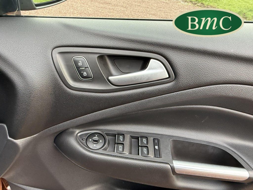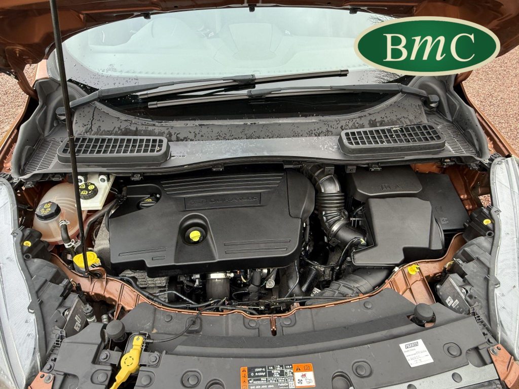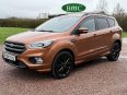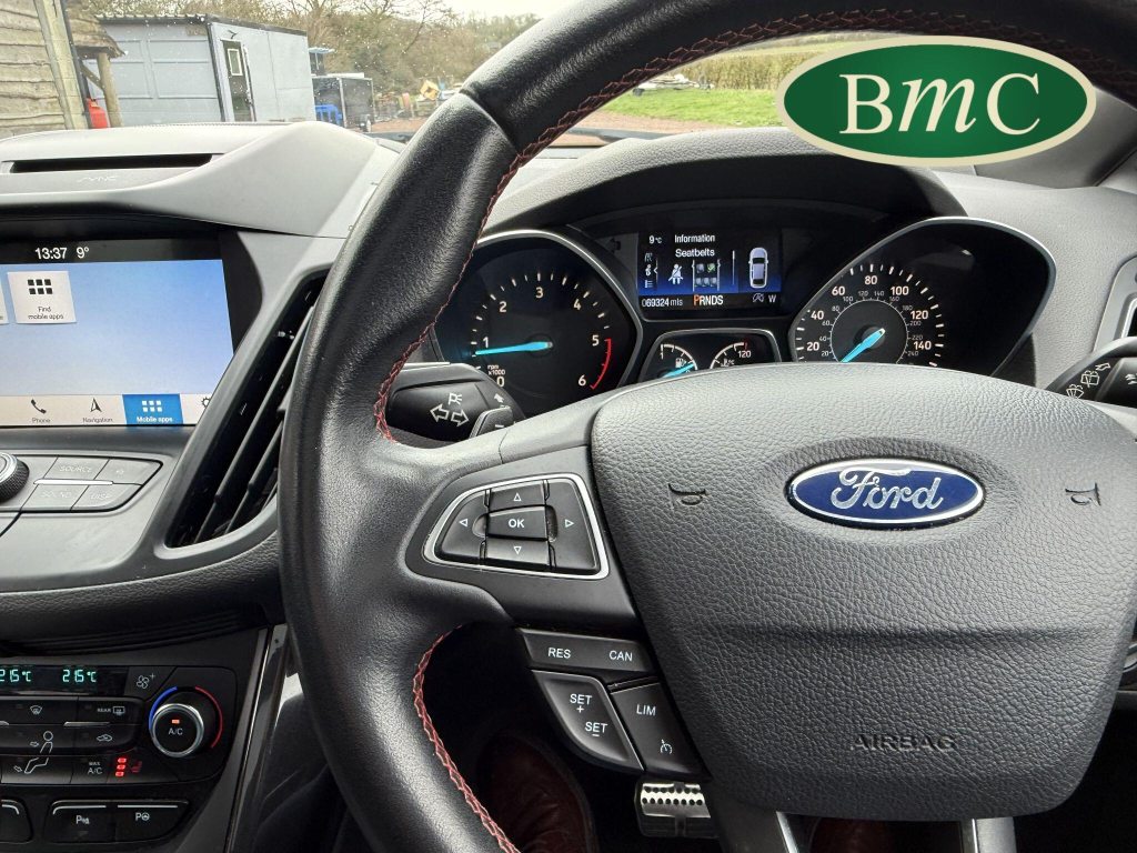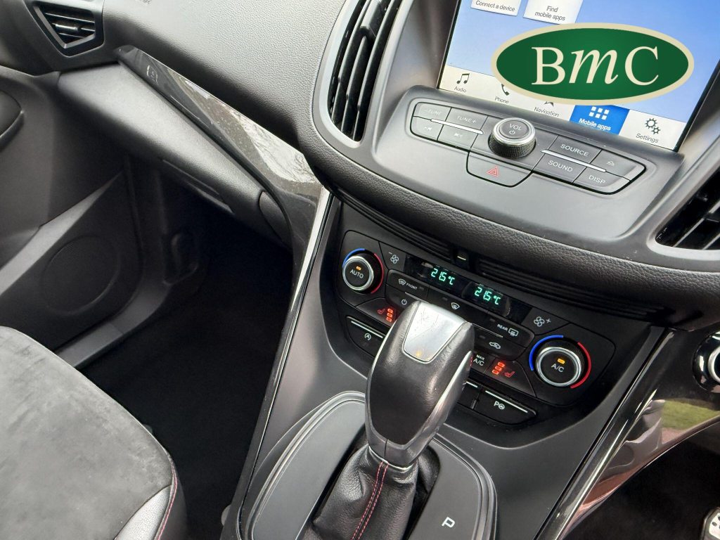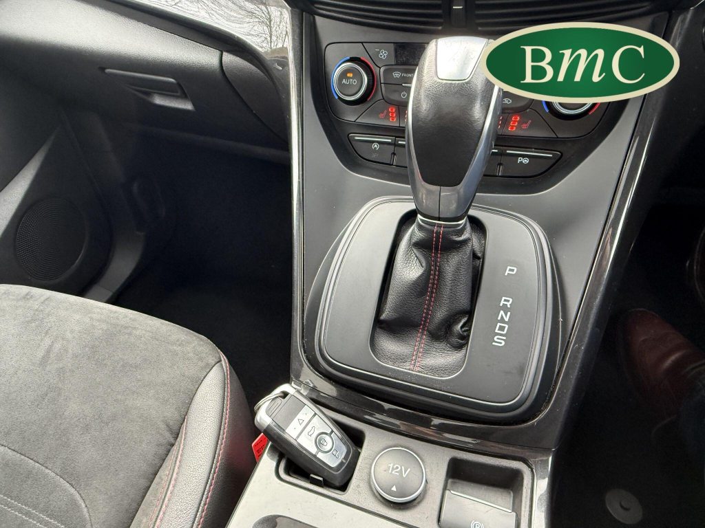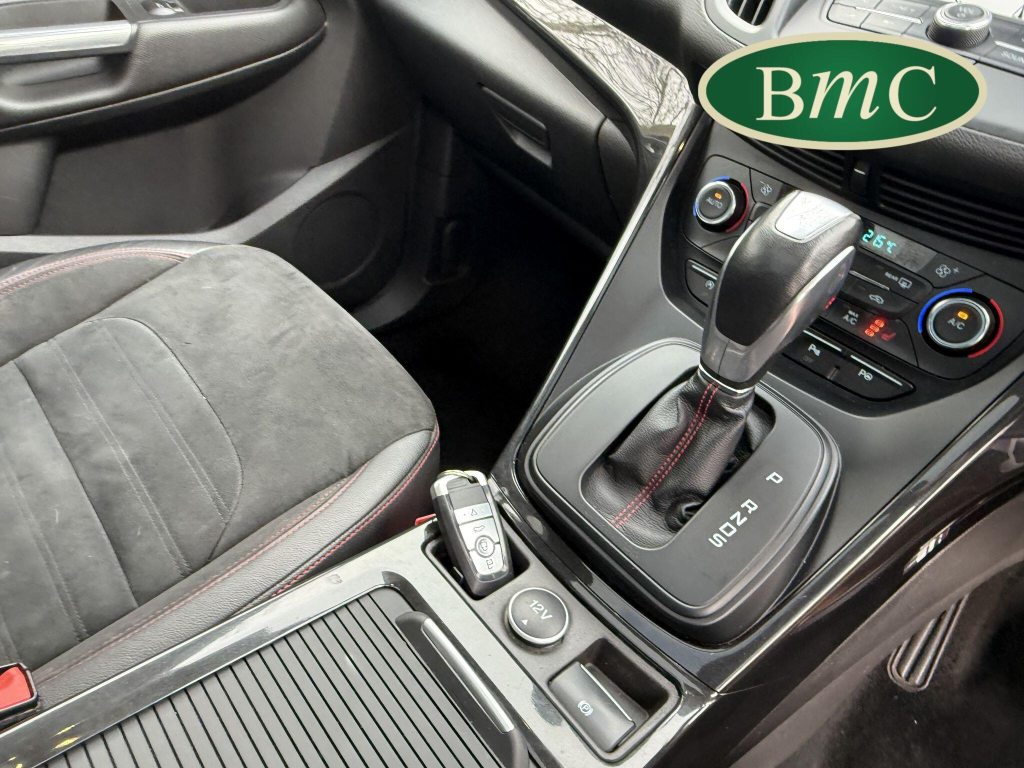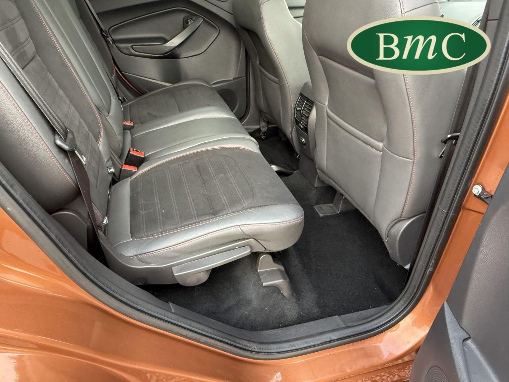 STUNNING COPPER PULSE METALLIC, 8 SERVICES! SERVICED @ 10k, 20k, 28k, 36k, 37k, 48k, 60k & 69k. BOTH KEYS AVAILABLE, FITTED TOW BAR, NAVIGATION SYSTEM, PANORAMIC SUNROOF, PRIVACY GLASS, SPACE SAVER SPARE WHEEL, ANTRACITE ALLOY WHEELS, BLACK ROOF RAILS, FRONT & REAR PARK SENSORS, LOAD COVER, FITTED MATS, BLACK HALF LEATHER SUEDE SEATS WITH RED STITCHING, CRUISE CONTROL, This 2018 Ford Kuga TDCi ST-Line X offers a compelling blend of style and practicality, featuring a robust 2.0L Diesel engine that meets Euro 6 emissions standards. As a 2018 model, it benefits from modern design and technology. The ST-Line X trim level ensures a sporty aesthetic and a host of desirable features, including a power opening panoramic roof that floods the cabin with light, and dual-zone electronic automatic temperature control for personalised comfort.Further enhancing your driving experience, this Kuga comes equipped with the Ford Key Free System, offering keyless entry and a hands-free power tailgate for ultimate convenience. Both front seats feature heated cushions and seat backs, perfect for colder journeys, while rear parking sensors provide added assistance when manoeuvring. This particular model also sits in a low insurance group, indicating it could be a more economical choice for many drivers compared to similar vehicles.