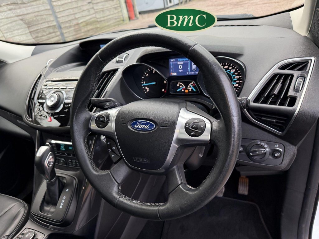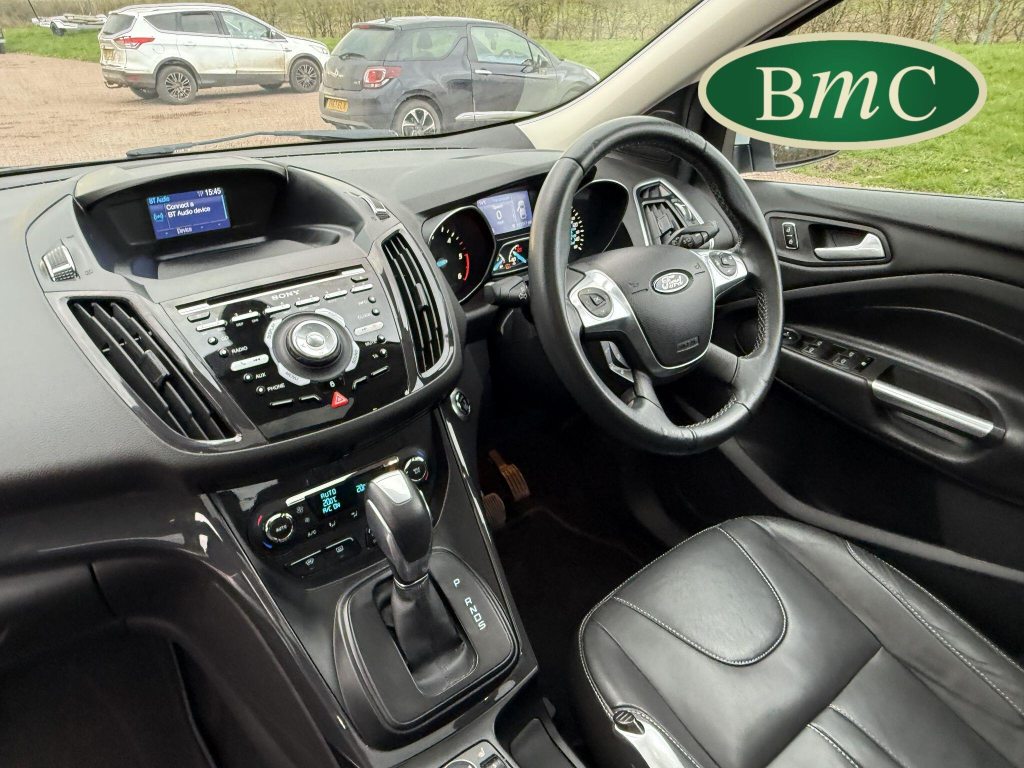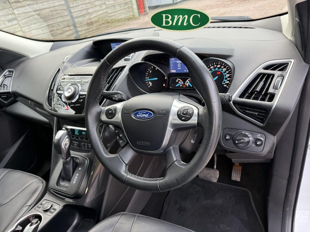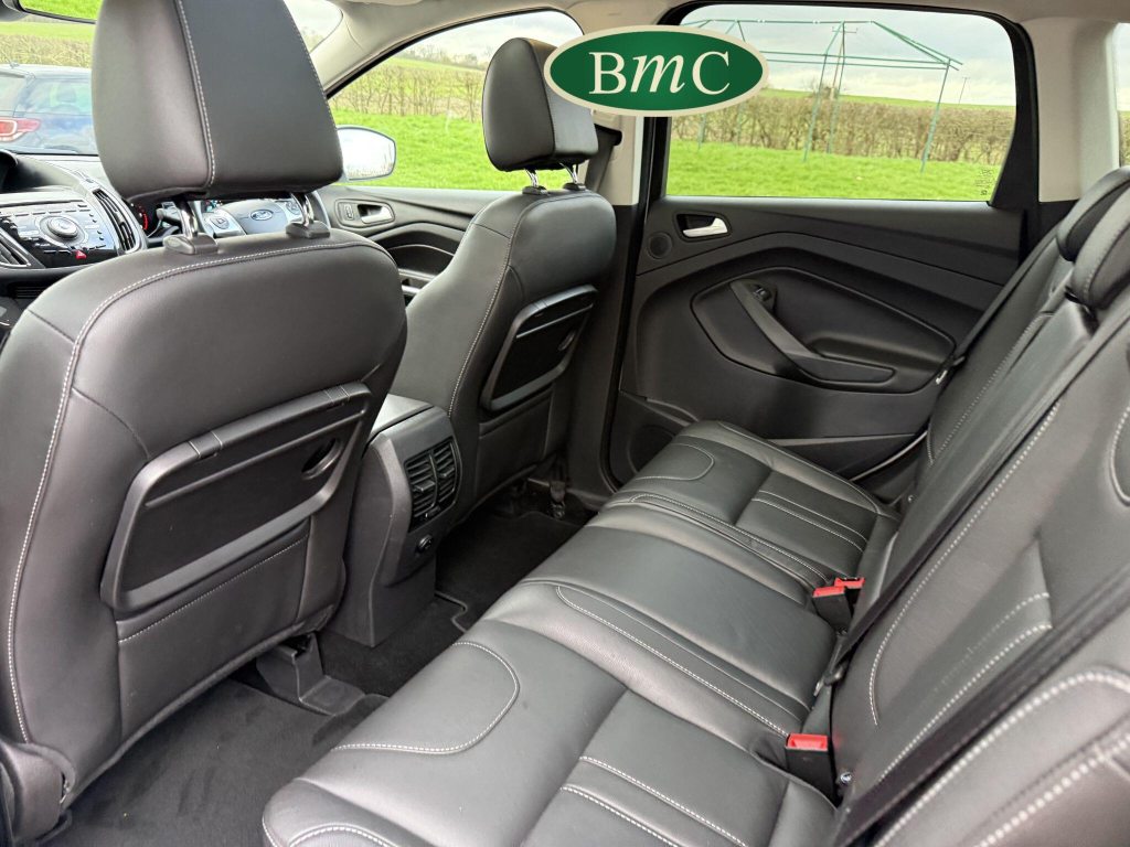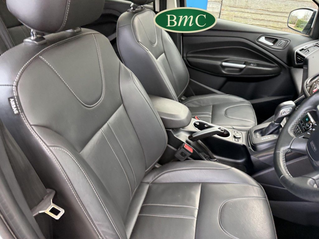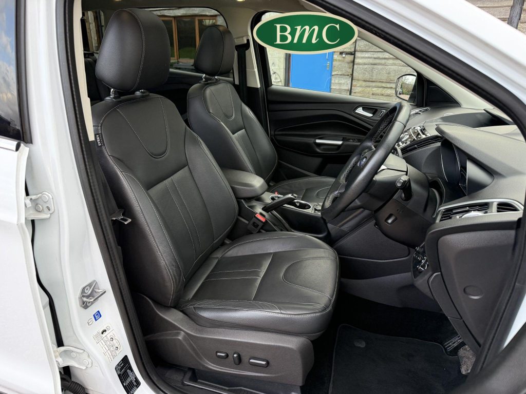 SERVICED @ 5K, 9K, 14K, 24K, 30K, 38K, 46K, 55K, 64K & 72K MILES.This 2015 Ford Kuga TDCi Titanium X presents a remarkable opportunity with its exceptionally low mileage of just 73,000 miles for its age. This Four Wheel Drive model is powered by an efficient 2.0L Diesel engine, meeting Euro 6 emissions standards. It boasts the desirable Titanium X trim, enhanced by the Convenience Pack which includes front parking sensors, and the Appearance Pack. Further adding to its appeal are the automatic headlights and a fixed panorama roof with a panoramic sunroof, alongside heated driver and passenger seats for added comfort.The Kuga TDCi Titanium X offers an impressive fuel economy of 52 miles per gallon, a figure that highlights its efficiency compared to many other vehicles in its class. The inclusion of the Convenience Pack with parking assistance and the automatic headlights demonstrate thoughtful features designed to make driving and parking easier. Combined with the comfort of heated seats and the expansive feel provided by the panorama roof, this Ford Kuga is a well equipped and economical choice for those seeking a capable and comfortable SUV.