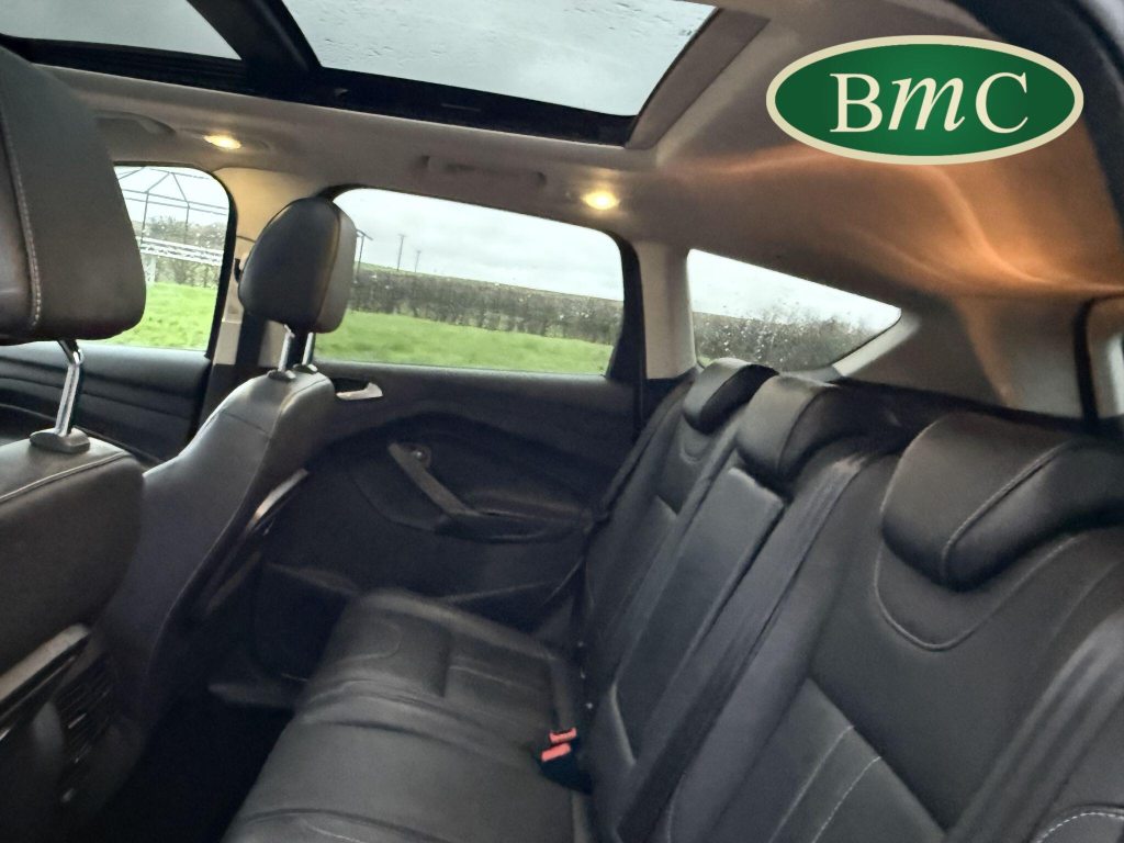 19in Alloy Wheels - 5x2 Spoke, 5in Colour Screen, ABS - Anti-lock Braking System, AUX Connection, Air Conditioning - Dual Zone Electronic Automatic Temperature Control, Airbags - Drivers Knee, Airbags - Front Passenger, Airbags - Front and 2nd Row Curtain, Airbags - Side Impact, Alarm - Thatcham Category 1 with Volume Sensing and Perimeter, Appearance Pack, Armrest - Folding Centre - Rear, Audible Text Messaging, Automatic Dimming Rear View Mirror, Automatic Rain Sensing Wipers, Bi-Xenon Headlights, Bluetooth Hands-free Phone, Body Colour Side Skirts, Bounce-Back Sensors, Convenience Pack, Courtesy Light - Footwell Illumination, Courtesy Light - Front and Rear Reading Lights, Cruise Control with Speed Limiter, Door Handles - Body Colour, Door Lever - Aluminium, Door Mirrors - Puddle Lights, Drivers Airbag, Drivers Seat Lumbar Support, EBA - Emergency Brake Assist, EBD - Electronic Brakeforce Distribution, EPAS - Electric Power Assisted Steering, ESP - Electronic Stability Programme, Electric Windows - Front and Rear with One Touch, Emergency Assistance, Emergency Brake Warning, Floor Mats - Carpet - Front, Ford Easy-Fuel Capless Refuelling System, Ford Power Engine Start-Stop Button, Ford SYNC, Front Fog Lights, Front Fully Adjustable 4 Way Head Restraints, Front Parking Sensors, Front Seat - Passengers Manual Lumbar Support Adjustment, Front Silver Skid Plate, Front upper grille - High-gloss black with chrome bar, Full Body Styling Kit, Gearshift Knob - Leather, HLA - Hill Launch Assist, Headlights - Automatic, Headlights - Courtesy Delay, Headlights - Jet Wash, Headlights - Levelling System - Automatic, Heated Driver and Passenger Seats, Heated Front Windscreen, Heated Washer Jets, High Gloss Black Bumper Detailing, High Gloss Rear Diffuser, IPS - Intelligent Protection System, ISOFIX, LED Daytime Running Lights, Large Stowage Bin, Load Compartment - Tie Down Hooks, Locking Wheel Nuts, Panorama Roof, Park Assist - Active, Parking Sensor - Rear, Portable Audio Device Connector, Power Fold Door Mirrors, Power Tailgate - Button Operated, Privacy Glass, RSC - Roll Stability Control, Rear Lights - LED, Rear Parcel Tray, Rear Seat - Folding Centre Armrest with 2 Integrated Cup Holders and Flip up Storage, Rear Spoiler - Body Colour, Rear View Camera, Remote Central Locking, Scuff Plates - Front-Stainless Steel, Seats - 6 Way Adjustable Passengers, Seats - 60-40 Rear Split Back, Seats - Drivers 10-Way Adjustment, Seats - Front Sports, Silver Roof Rails, Sony CD-Radio Player-MP3 Compatibility, Sony DAB Digital Radio, Sony DAB Navigation System with Rear View Camera, Spare Wheel - Mini Steel, Speakers - x8, Speakers - x9, Steering Column - Rake and Reach Adjustment, Steering Wheel - 4 Spoke Leather Trimmed, Steering Wheel - Multifunction, Storage - Upper Instrument Panel, Stowage Pockets - Front Seatback, TSC - Trailer Stability Programme, TVC - Torque Vectoring Control, Tinted Glass - Green, Traction Control - TC, Twin Exhaust Outlet, Two 12V Power Socket, Tyre Pressure Monitoring System, USB Connection - iPod Connectivity, Variable Dimming of Instrument Cluster and Radio Screen Display, Visual AWD Monitor, Voice Control - Audio, Keyless Opening with Hands Free Power Tailgate, Torino Partial Leather - Ebony