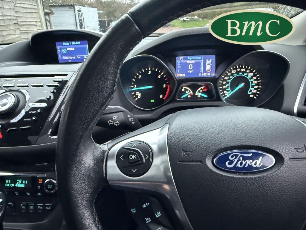 SERVFICED @ 9K, 16K, 26K, 28K, 29.2K, 29.6k, 36K & 42K MILES! PANORAMIC SUNROOF, POPWER TAILGATE, DAB RADIO, BLUETOOTH, HEATED SEATS, PRIVACY GLASS, KEYLESS, STUNNING!This 2015 Ford Kuga TDCi Titanium X Sport is a remarkable find, boasting an exceptionally low mileage of just 42,000 miles for its age. This Four Wheel Drive model is powered by an efficient 2.0L Diesel engine, meeting Euro 6 emission standards. It comes equipped with a stunning Panorama Roof, a premium Sony DAB Navigation System complete with a rear view camera and rear parking sensors for effortless manoeuvring, and automatic headlights. Stay connected on the go with Bluetooth hands free phone connectivity, all presented in the desirable Titanium X Sport trim.With an impressive fuel economy of 52 mpg, this Ford Kuga offers excellent value for money, demonstrating its superiority over many similar vehicles. The combination of its advanced technology, comfortable interior, and robust Four Wheel Drive system makes it a highly capable and appealing choice for a wide range of driving needs. This Kuga represents a well maintained and feature rich option for those seeking a reliable and stylish SUV.