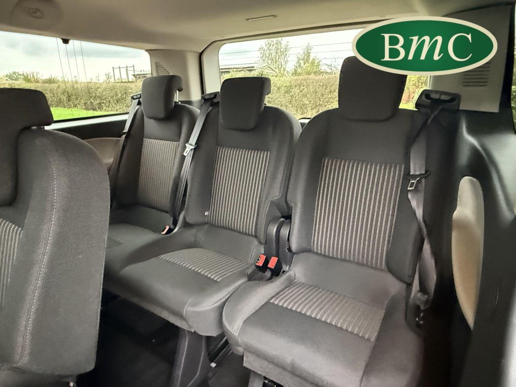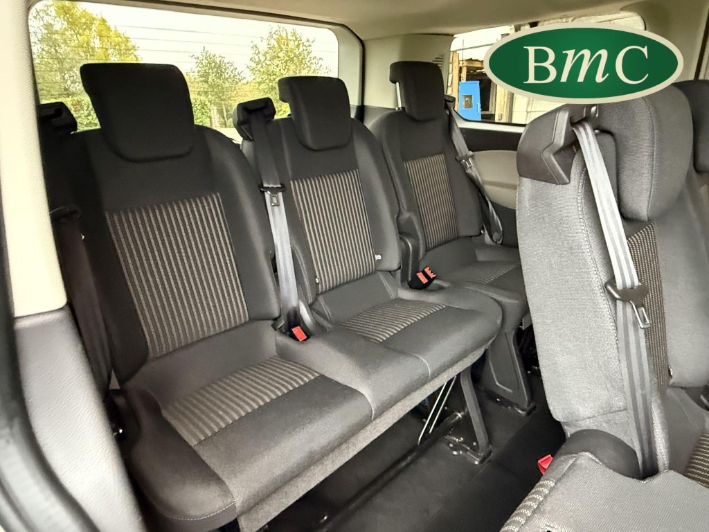 Airbag - Drivers, Airbag - Front Passengers, Airbag - Front Side and Curtain Airbags, Anti-Lock Braking System - ABS - with Electronic Brake-Force Distribution, Assist Handle - Located on B-pillar, Bottle Holder - Twin 2 litre Bottle Capacity - Facia-Mounted, Bumper - Body Colour Front Bumper, Courtesy Light - Footwell Illumination, Courtesy Light - Header-Mounted - Front Maps Lights with Theatre Dimming, Courtesy Light - Rear Seat with Theatre Dimming, Cruise Control, Cup Holder - Twin - Facia-mounted - in Base, Door Mirrors - Blind Spot Eliminator and Integrated Side Indicator, Door Mirrors - Power Adjustable-Heated and Power Fold, Doors - Drivers and Passengers Side - Sliding Glazed Doors and Steps, Doors - Glazed Rear Liftgate with Wash-Wipe, Drivers Seat - 10-way Heated with Armrest, EBA - Emergency Brake Assist, ESC - Electronic Stability Control, Electrically-Operated Front Windows with One-shot Up-down on Drivers Side, Emergency Brake Warning, Floor Covering - Carpet, Fog Lights - Front, Ford Audio System with SYNC and Applink - ICE Pack 8, Ford Easy-Fuel Capless Refuelling System with Misfuel Inhibit, Ford Eco Mode - Driver Information System, Front - Independent MacPherson Struts - Coil Springs - Stabiliser Bar and Gas-Pressurised Shock Absorbers - Rear - Leaf Springs and Gas-Pressurised Shock Absorbers, Front Air Conditioning with Pollen Filter, Front Passengers Seat - Single - 8-way Heated with Armrest, Gearshift Indicator Light, Gearshift Knob - Leather-Trimmed, Glovebox - with Lockable Lid, Headlights - Automatic On-Off, Headlights - Day Time Running Lights, Headlights - Projector Style Halogen Reflector Lights with Chrome Background and Static Cornering Lights, Headlights Courtesy Delay - 30 Seconds Duration, Heater - PTC, Heater - Recirculation, Hill Start Assist, ISOFIX - Child Seat 3 Attachments - Centre - Second and Third Row - and Drivers Side - 2nd Row - Seats, Interior Lighting - Battery Saver - 30min, LAC - Load Adaptive Control, Load Compartment - DIN 75410 Compliant Tie-down Loops, Loadspace Compartment Lights, Locks - Audio Mislock Feedback - Audible Signal if a Door is Ajar When Locking Activated, Locks - Auto Locking on Drive-away - Doors Automatically Lock at 5 mph - with Crash Unlocking Disabled, Locks - Auto Relocking - Doors Relock after 45 Seconds if no Door is Opened, Locks - Configurable Locking Pack 2 - 2-Stage Unlocking, Locks - Key Operated Bonnet Release, Locks - Power Door Deadlocks - Shielded with Strengthened Mountings, Locks - Remote Control Central Locking with 2 Key Fobs, Mud Flaps - Front, Parking Distance Sensors - Front and Rear, Passive Anti-Theft System - PATS - Immobiliser, Power Assisted Steering, Power Point Socket - 12V - Rear, Power Point Socket - 2x 12V, Quickclear Heated Windscreen, RSC - Roll Stability Control, Rain Sensing Front Wipers and Automatic Headlights, Rear Privacy Glass, Rear Seat Recline and Second Row Armrests, Rear Seats - Second Row - Triple Wide Seats - 2+1 - Foldable and Detachable, Rear Seats - Third Row - Triple Wide Seats - 2+1 - Foldable and Detachable, Rear Window - Heated, Seatbelts - 3 Point Diagonal Inertia Reel - All Seats, Side Step - Door Length, Side Wind Stabilisation, Side Windows - Second Row - Flip Open, Side Windows - Third Row - Fixed, Spare - Full Size with Tool Kit, Standard Duty Battery - Single AGM 80Ah - 800CCA, Steel Wheels - 6.5 x 16, Steering Column - Rake and Reach Adjustment, Steering Wheel - 4-Spoke Leather Trimmed, Storage - Centre Stack-mounted Car Park - Toll Ticket Holder, Storage - Drivers Side - Storage Compartment on Facia Top with Lift Up Lid, Storage - Front Door Map Pockets, Traction Control - TC, Trailer Sway Control, Trip Computer, Tyre Pressure Monitoring System - TPMS, Vehicle Identification Number - VIN - Visible, Water in Fuel Filter with Sensor, Wheel Covers - Full, Wipers - Rear with Auto Reverse Wipe and Electrically-operated Wash