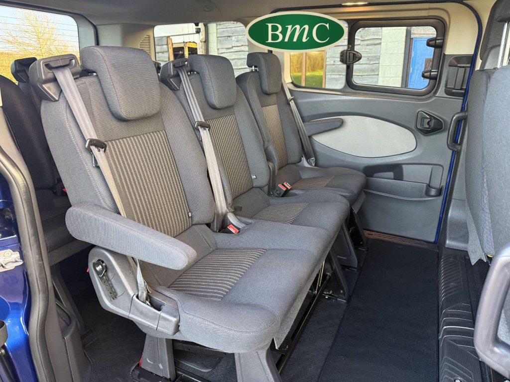 9 SEATER. 1 HEALTH AUTHORITY OWNER. FULL MAINTAINANCE/SERVICE HISTORY PRINT OUT. WET BELT RECENTLY REPLACED WITH INVOICE FOR ALL FORD PARTS & LABOUR! BLUETOOTH, FRONT & REAR PARK SENSORS, FRONT FOG LAMPS, PRIVACY GLASS, LEATHER MULTIFUNCTION STEERING WHEEL WITH CRUISE CONTROL, STUNNING! NO ADAPTATIONS!! NO VAT! FULL MOT WITH NO ADVISORIES!This 2018 Ford Tourneo Custom 2.0 310 EcoBlue Zetec L1 Euro 6 (s/s) 5dr boasts a single owner from new, offering excellent provenance. This Zetec derivative is powered by an efficient 2.0 litre diesel engine and meets Euro 6 emissions standards. It comes equipped with front air conditioning with a pollen filter, door mirrors featuring blind spot elimination and integrated side indicators, and parking distance sensors for both the front and rear. For your convenience and entertainment, it includes a Ford Audio System with SYNC and Applink, complete with Bluetooth connectivity. The driver's seat is a 10 way heated seat with an armrest for added comfort.This Tourneo Custom is designed for practicality and comfort, achieving an impressive fuel economy of 46 miles per gallon. Its low CO2 emissions also indicate a more environmentally conscious choice compared to similar vehicles. The inclusion of features like heated seats and advanced parking assistance further enhances its appeal, demonstrating a thoughtful specification that sets it apart.