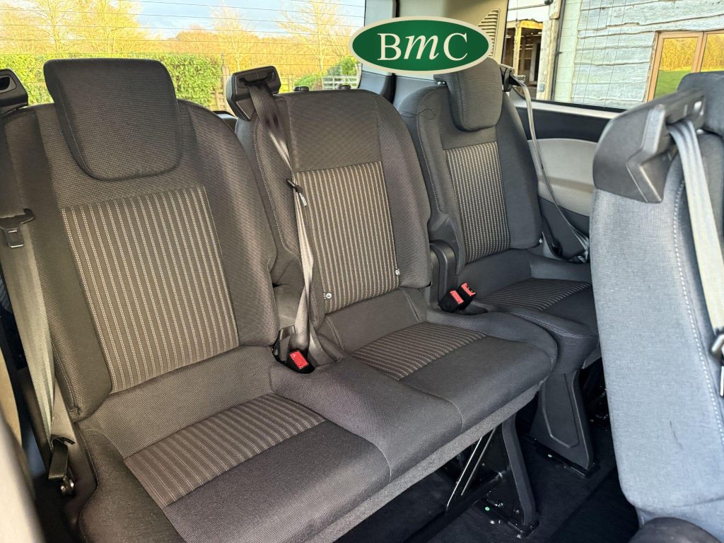 Airbag - Drivers, Airbag - Front Passengers, Airbag - Front Side and Curtain Airbags, Anti-Lock Braking System - ABS - with Electronic Brake-Force Distribution, Assist Handle - Located on B-pillar, Bottle Holder - Twin 2 litre Bottle Capacity - Facia-Mounted, Bumper - Body Colour Front Bumper, Courtesy Light - Footwell Illumination, Courtesy Light - Header-Mounted - Front Maps Lights with Theatre Dimming, Courtesy Light - Rear Seat with Theatre Dimming, Cruise Control, Cup Holder - Twin - Facia-mounted - in Base, Door Mirrors - Blind Spot Eliminator and Integrated Side Indicator, Door Mirrors - Power Adjustable-Heated and Power Fold, Doors - Drivers and Passengers Side - Sliding Glazed Doors and Steps, Doors - Glazed Rear Liftgate with Wash-Wipe, Drivers Seat - 10-way Heated with Armrest, EBA - Emergency Brake Assist, ESC - Electronic Stability Control, Electrically-Operated Front Windows with One-shot Up-down on Drivers Side, Emergency Brake Warning, Floor Covering - Carpet, Fog Lights - Front, Ford Audio System with SYNC and Applink - ICE Pack 8, Ford Easy-Fuel Capless Refuelling System with Misfuel Inhibit, Ford Eco Mode - Driver Information System, Front - Independent MacPherson Struts - Coil Springs - Stabiliser Bar and Gas-Pressurised Shock Absorbers - Rear - Leaf Springs and Gas-Pressurised Shock Absorbers, Front Air Conditioning with Pollen Filter, Front Passengers Seat - Single - 8-way Heated with Armrest, Gearshift Indicator Light, Gearshift Knob - Leather-Trimmed, Glovebox - with Lockable Lid, Headlights - Automatic On-Off, Headlights - Day Time Running Lights, Headlights - Projector Style Halogen Reflector Lights with Chrome Background and Static Cornering Lights, Headlights Courtesy Delay - 30 Seconds Duration, Heater - PTC, Heater - Recirculation, Hill Start Assist, ISOFIX - Child Seat 3 Attachments - Centre - Second and Third Row - and Drivers Side - 2nd Row - Seats, Interior Lighting - Battery Saver - 30min, LAC - Load Adaptive Control, Load Compartment - DIN 75410 Compliant Tie-down Loops, Loadspace Compartment Lights, Locks - Audio Mislock Feedback - Audible Signal if a Door is Ajar When Locking Activated, Locks - Auto Locking on Drive-away - Doors Automatically Lock at 5 mph - with Crash Unlocking Disabled, Locks - Auto Relocking - Doors Relock after 45 Seconds if no Door is Opened, Locks - Configurable Locking Pack 2 - 2-Stage Unlocking, Locks - Key Operated Bonnet Release, Locks - Power Door Deadlocks - Shielded with Strengthened Mountings, Locks - Remote Control Central Locking with 2 Key Fobs, Mud Flaps - Front, Parking Distance Sensors - Front and Rear, Passive Anti-Theft System - PATS - Immobiliser, Power Assisted Steering, Power Point Socket - 12V - Rear, Power Point Socket - 2x 12V, Quickclear Heated Windscreen, RSC - Roll Stability Control, Rain Sensing Front Wipers and Automatic Headlights, Rear Privacy Glass, Rear Seat Recline and Second Row Armrests, Rear Seats - Second Row - Triple Wide Seats - 2+1 - Foldable and Detachable, Rear Seats - Third Row - Triple Wide Seats - 2+1 - Foldable and Detachable, Rear Window - Heated, Seatbelts - 3 Point Diagonal Inertia Reel - All Seats, Side Step - Door Length, Side Wind Stabilisation, Side Windows - Second Row - Flip Open, Side Windows - Third Row - Fixed, Spare - Full Size with Tool Kit, Standard Duty Battery - Single AGM 80Ah - 800CCA, Steel Wheels - 6.5 x 16, Steering Column - Rake and Reach Adjustment, Steering Wheel - 4-Spoke Leather Trimmed, Storage - Centre Stack-mounted Car Park - Toll Ticket Holder, Storage - Drivers Side - Storage Compartment on Facia Top with Lift Up Lid, Storage - Front Door Map Pockets, Traction Control - TC, Trailer Sway Control, Trip Computer, Tyre Pressure Monitoring System - TPMS, Vehicle Identification Number - VIN - Visible, Water in Fuel Filter with Sensor, Wheel Covers - Full, Wipers - Rear with Auto Reverse Wipe and Electrically-operated Wash, Cloth - Charcoal Black, Rear Seat Pack 1 - Cloth - Charcoal Black
