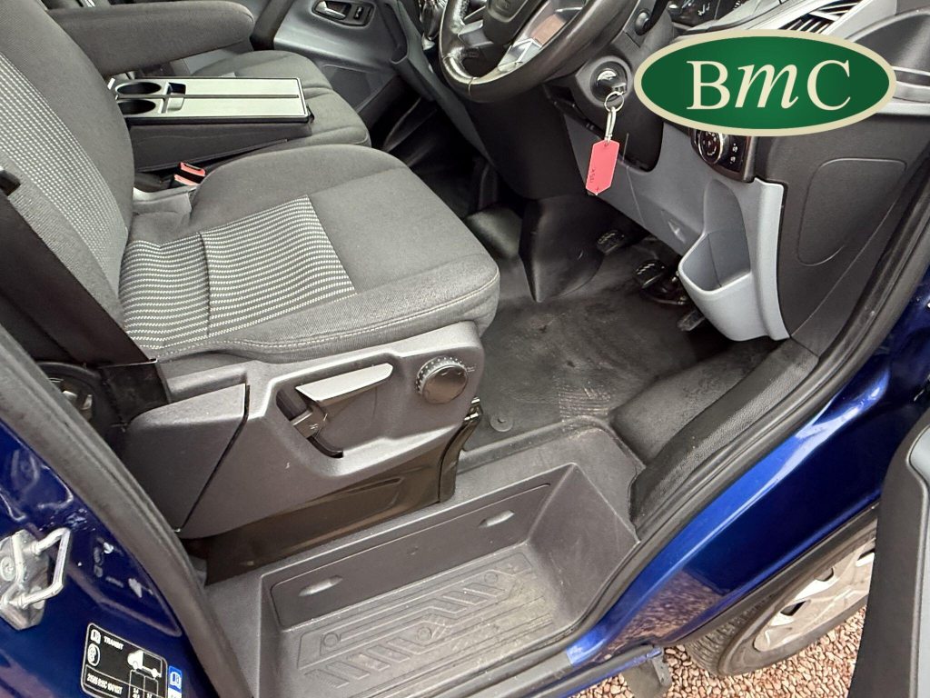 15in Steel Wheels - 6.5x15 (215/65 R15) with Full Wheel Covers, 2nd Remote Key Fob, Anti-Lock Braking System (ABS) and Emergency Brake Assist (EBA), Auto Wipers with Rain Sensor, Automatic Headlights, Auxiliary Connection Point - 3x60 Amp, Located Under Driver Seat Pedestal , Power Point Socket 2x12V, Bulkhead - Full Width Steel, Unglazed with Load-Through Facility, Complete Rear Trim Board - Half Height, Cruise Control, Deadlocks, Driver Seat Armrest, Driver Seat Height Adjustment, Driver Seat Lumbar Adjustment, Drivers Airbag, Easy Clean Load Floor, Electrically-Operated Front Windows with One-Touch Lowering on Drivers Side, Electronic Brake-Force Distribution (EBD), Electronic Stability Control (ESC) and Roll-Over Mitigation (ROM), Ford Audio System with SYNC/Applink (ICE Pack 8), Ford Eco Mode (Driver Information System), Four Front Speakers, Head Restraints - Front, Hill Start Assist (HSA), Immobiliser - Safeguard Passive Anti-Theft System (PATS), Leather Trimmed Gearshift Knob, Outside Temperature Display, Parking Aid Sensor (Front and Rear), Passengers Sliding Side Load Door and Step, Power Assisted Steering (PAS), Power Heated/Power Fold Signal Mirrors, Quickclear Heated Windscreen, Rake and Reach Adjustable Steering Wheel, Remote Audio Controls, Remote Control Central Locking with One Key Fob, Static Cornering Lights and Day Time Running Lights, Steel Spare Wheel, Third Brake Light, Tinted Glass Complete, Twin Facia-Mounted Cup Holder, Tyre Inflator Kit, Upholstery - Charcoal Cloth, Voice Control System