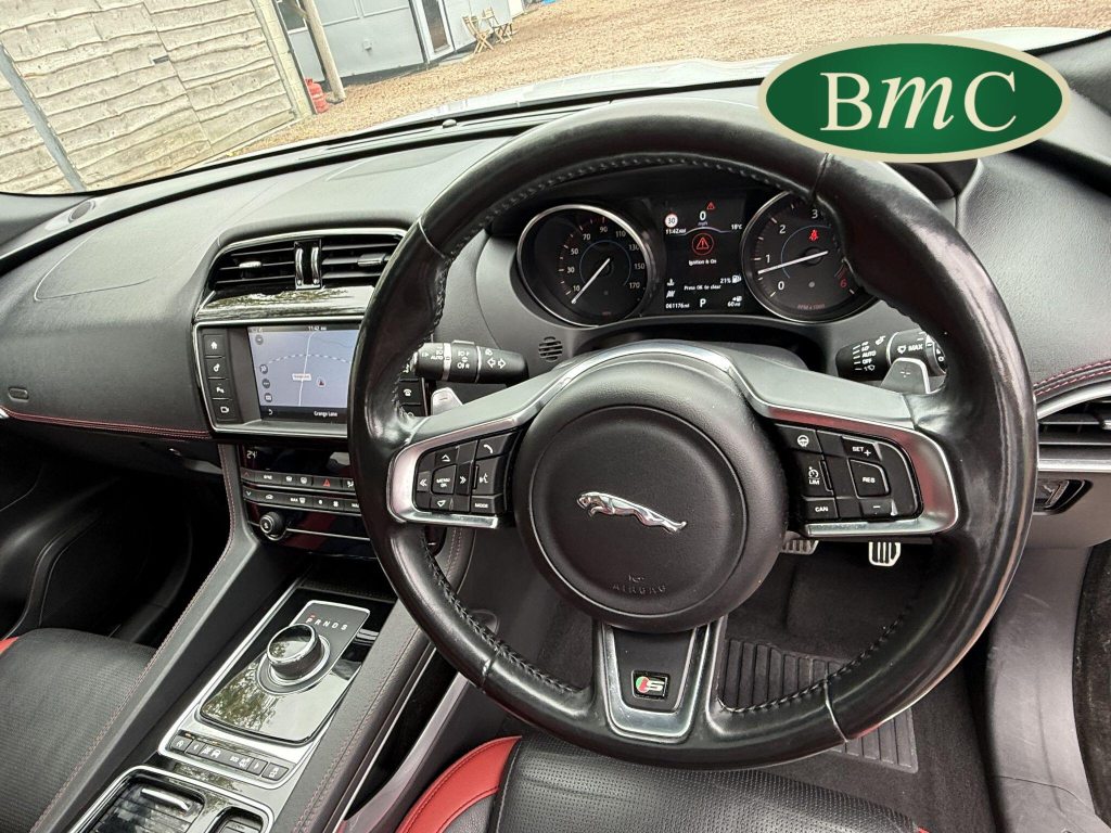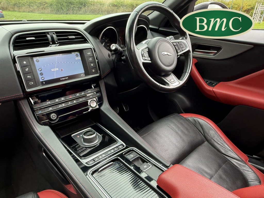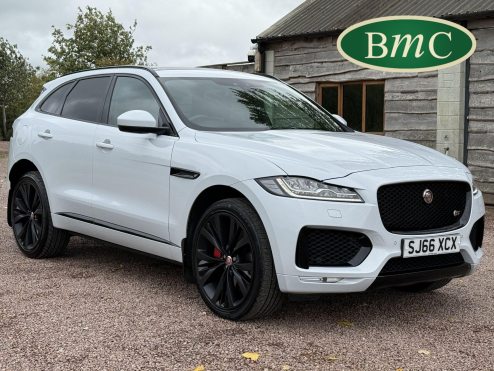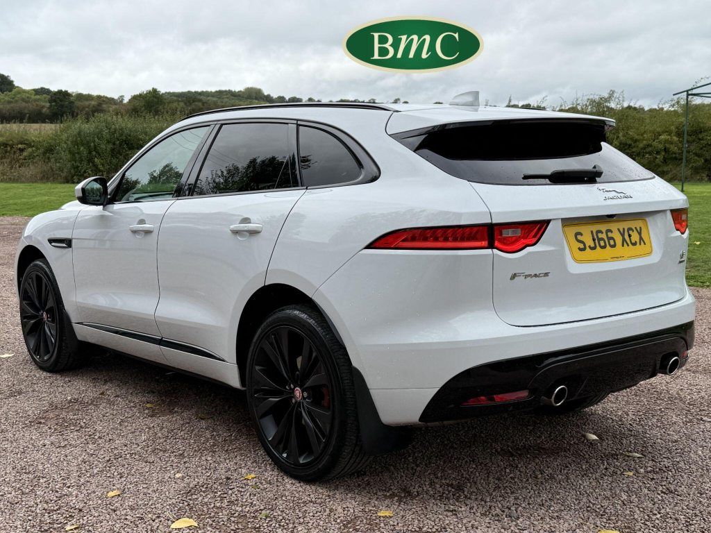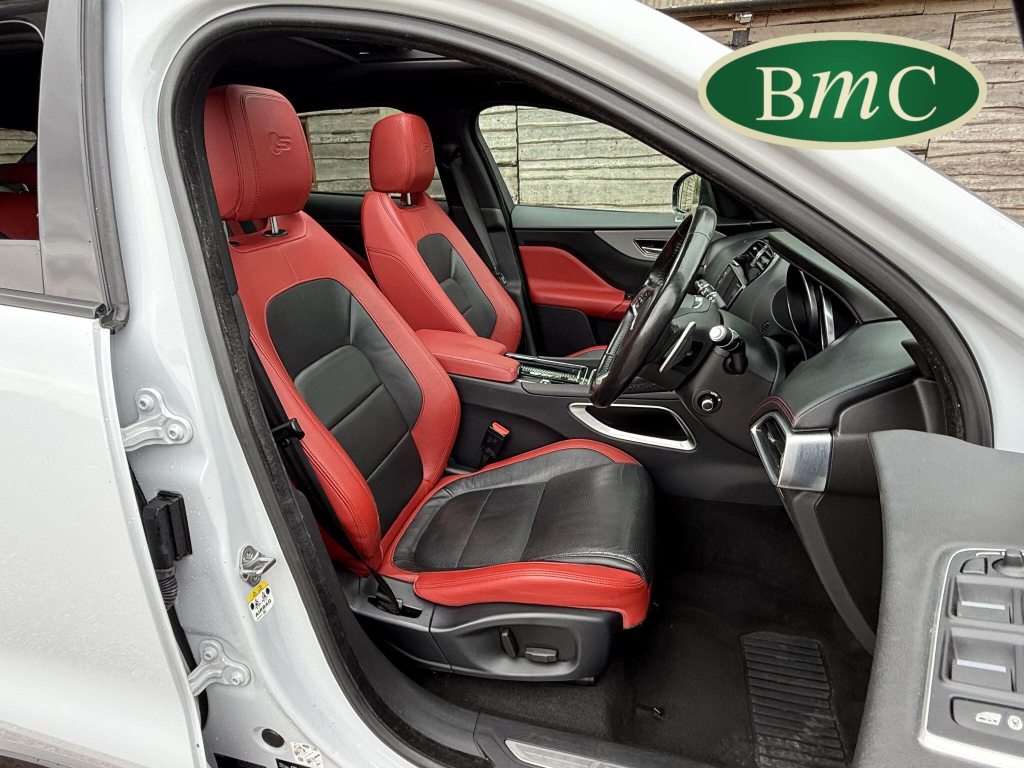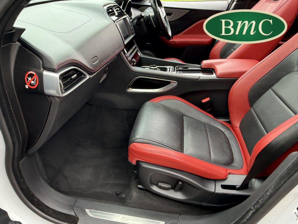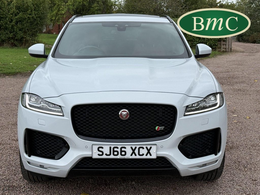 OTSUNI WHITE PEARL, SERVICED @ 7K, 10K, 12K, 18K, 24K, 32K, 47K, 49K & 59K MILES. OPENING PANORAMIC SUNROOF, RED AND BLACK LEATHER HEATED ELECTRIC MEMORY SPORTS SEATS, 22'' SATIN BLACK DOUBLE HELIX ALLOY WHEELS. PRIVACY GLASS, COLD CLIMATE PACK, LANE ASSIST, REVERSE CAMERA, MERIDIAN HIFI, MIRROR PACK, BLACK PACK, REVERSE CAMERA, DAB RADIO, BLUETOOTH, This 2016 Jaguar F PACE D300 V6 S presents an exceptional opportunity with its remarkably low mileage of just 61,000 miles for its age. This Four Wheel Drive model, powered by a 3.0L Diesel Engine and meeting Euro 6 emissions standards, offers a compelling blend of performance and practicality. It boasts striking 22in Double Helix 15 spoke alloy wheels in a black finish with dark inserts, a sliding panoramic roof for an airy cabin feel, and a detachable tow bar, making it versatile for various needs. The F PACE also features advanced LED headlights and a fuel burning heater with park heat and remote control, enhancing both visibility and comfort.The Jaguar F PACE D300 V6 S stands out with its impressive acceleration, reaching 0-60mph in a swift 5.7 seconds, demonstrating its dynamic capability. This performance, combined with its low insurance group and generous boot space, positions it favourably against similar vehicles. The vehicle's towing weight of 2400 kg further adds to its utility, making it a well rounded choice for those seeking a premium SUV experience with a focus on both driving pleasure and everyday usability.