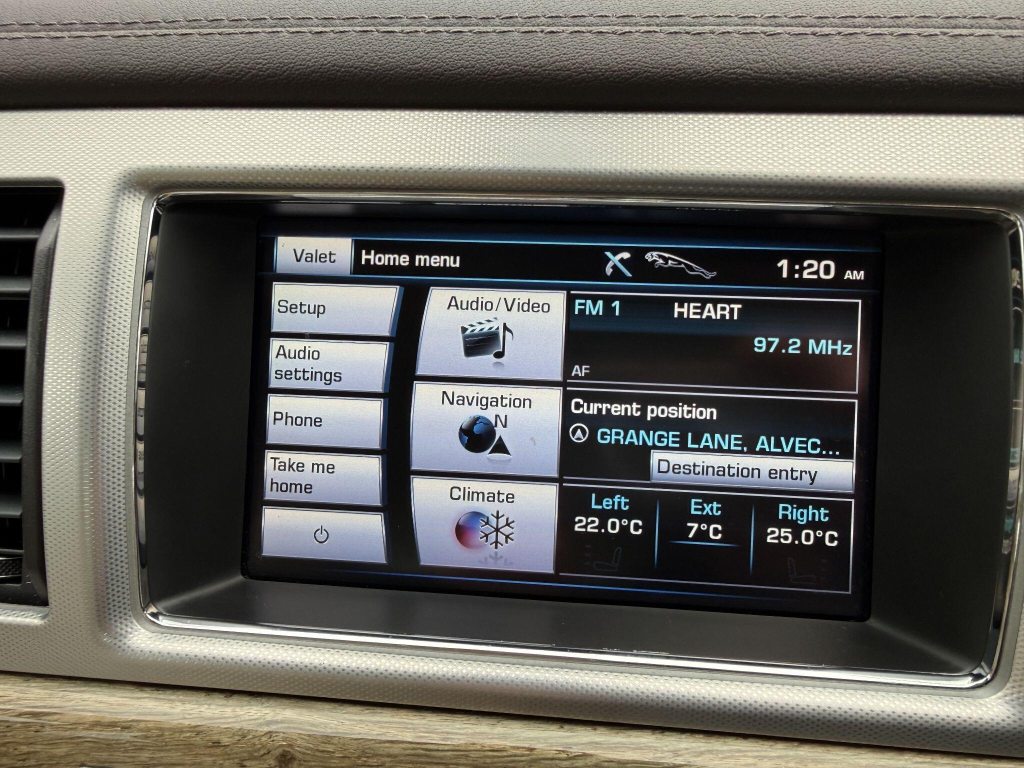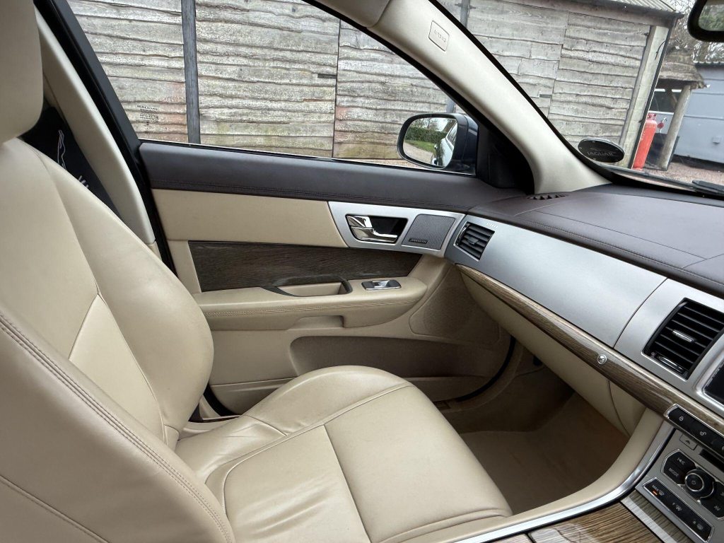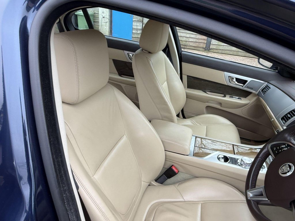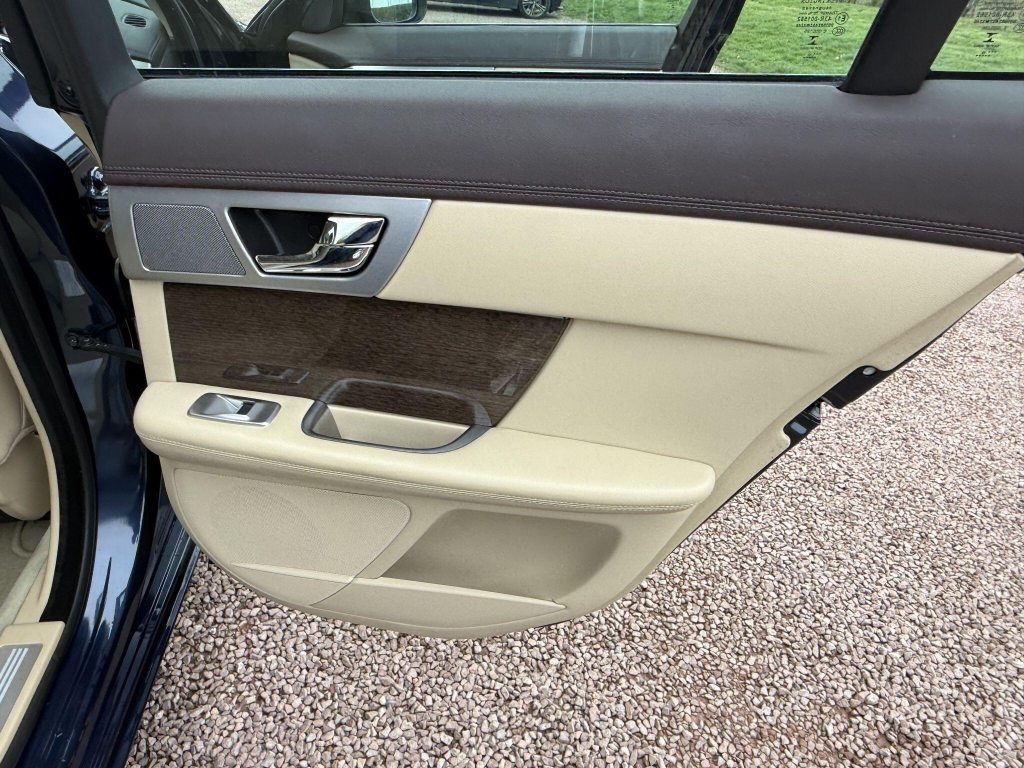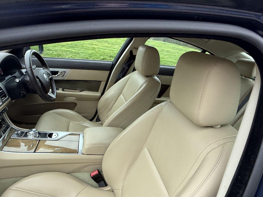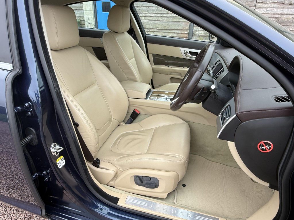 18in Alloy Wheels - Vela, 3-Flash Lane Change Indicators, 3.5mm Stereo Auxiliary Input Socket, 7in Colour Touch Screen Display, ABS - Anti-locking Braking System, ASL - Automatic Speed Limiter, Acoustic Layer Windshield, Airbags - Driver, Airbags - Front Side, Airbags - Passenger, Airbags - Side Curtain, Approach Illumination - Automatic via Remote, Audio Equipment - Meridian Audio System 380W-Radio-CD-MP3, Auto-Dimming Interior Rear View Mirror, Automatic Headlight On, Automatic Headlight Washers, Auxiliary Heater, Auxiliary Power Point in Rear, Bluetooth Connectivity, Brake Pad Wear Indicator, Carpet Mat Set - Font and Rear, Chrome Grille with Chrome Surround, Cruise Control, DAB Radio Receiver, Diesel Misfuelling Protection Device, Door Mirrors - Electric Adjustment-Heated-Auto Dimming-Powerfolding-Side Repeaters, Driver Information Centre with Dual Function Trip Computer, Driver and Front Passenger Sun Visors with Illuminated Vanity Mirrors, Driver and Passenger Electric Seat Height Adjustment, Drivers Foot Rest, Dual Zone Automatic Climate Control, EBA - Emergency Brake Assist, EBD - Electronic Brake-Force Distribution, EPB - Electronic Parking Brake - Drive Away Release, Electric Windows, Front Centre Console with Storage Compartment and Twin Cupholders, Front Courtesy Footwell Lights, Front Media Interface, Front Seats - Whiplash Reduction System, Hazard Lights Under Heavy Braking, Head Restraint - Rear Centre, Headlights - Automatic Levelling, Headlights - LED Signature Lights with Daytime Running, Headlights - Xenon, Heated Front Seats, Heated Rear Window with Timer, ISOFIX Anchor Points for Rear Child Seat, Interior Mood Lighting - Phosphor Blue Halo Illumination, Jaguar Smart Key System with Keyless Entry, Jaguar Tyre Repair System, JaguarDrive Control with Sport and Winter Mode, JaguarDrive Selector, JaguarSense - Overhead Light Console, LED Tail Lights, Lumbar Support - Driver/2 Way Power, Passive Suspension, Pedestrian Contact Sensing and Deployable Bonnet, Rain Sensing Windscreen Wipers, Rear Coat Hooks, Rear Parking Aid with Touch Screen Visual Indicator, Remote Control Boot Release, Remote Control Central Locking with Dead Locking and Drive-Away Locking, Remote Controls for Audio System, Satellite Navigation, Seats - Electric Driver/Passenger Adjustment - 10x6 Way with Memory, Seats - Front - Back Map Pockets, Seats - Rear Centre Armrest, Seats - Rear Folding - 60/40 split, Security System, Servotronic Steering, Single Elliptical Tailpipe, Speakers x11 including 1 Subwoofer, Steering Column - Electric Adjustment for Height and Reach with Entry and Exit Tilt-Away, Steering Wheel - 3-Spoke-Leather-Shift Paddles, TFT Message Centre, Tailored Instrument Panel - Soft Grain Leather Stitched, Trac DSC - Dynamic Stability Control with 3 Setting Levels, Traction Control, Twin Cupholders in Rear Seat Centre Armrest, Two Front/One Rear Auxiliary Sockets, Veneer - Rich Oak, Windscreen - Heated with Timer, XF Badge, Parking Aid - Front with Rear Camera, Spare Wheel - 18in Alloy Space Saver - Non-Supercharged Derivatives