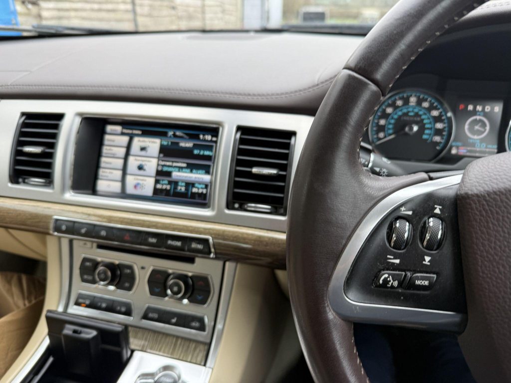 DEMO + 1 OWNER! SERVICED @ 4.8K, 8.9K, 12.2K, 13.1K, 14K, 14.5K, 15.2K, 16.1K, 16.3K, 17K, 17.9K & 18.7K MILES.Discover this exceptional 2013 Jaguar XF d Premium Luxury, boasting an incredibly low mileage of just 19,000 miles, making it a truly rare find for its age. This sophisticated saloon, powered by a 2.2 litre diesel engine, has been cherished by only two owners. It comes equipped with a host of premium features designed for comfort and convenience, including automatic headlights that illuminate your path, LED signature lights with daytime running functionality, and the convenient Jaguar Smart Key System for keyless entry. Stay connected on the go with Bluetooth connectivity, and immerse yourself in superior sound with the 380W Meridian audio system, complete with radio and CD MP3 capabilities.This Jaguar XF d Premium Luxury offers a driving experience that stands out from the crowd. The generous boot space ensures you have ample room for luggage or shopping, a practical advantage for everyday use and longer journeys. The combination of its remarkably low mileage, limited ownership, and the inclusion of desirable features like the Meridian sound system and LED lighting clearly demonstrates its superior condition and appeal compared to other vehicles of its kind.