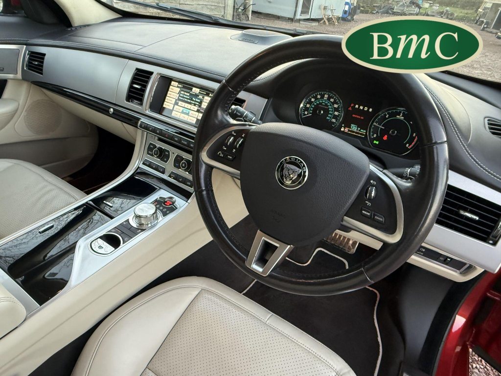 1 OWNER FROM NEW!! 6 SERVICES, SERVICED @ 8K, 16K, 24K, 39K, 50K, & JUST SERVICED BY US @ 56K. FULL MOT WITH NO IDVISORIES.Both Keys. ITALIAN RACING RED PEARLESCENT, IVORY LEATHER HEATED & CHILLED ELECTRIC MEMORY SPORTS COMFORT SEATS, REVERSE CAMERA, SATELLITE NAVIGATION, DAB RADIO, BLUETOOTH, KEYLESS, PRIVACY GALSS, POWER TAILGATE, PARK SENSORS, ALLOY SPACE SAVER SPARE WHEEL, 20'' ANTHRACITE DIAMOND CUT DRACO ALLOY WHEELS, MATCHING DUNLOP PREMIUM TYRES, DAYTIME LED RUNNING LIGHTS, MERIDIAN 825W HIFI, STUNNING EXAMPLE!This 2014 Jaguar XF d S V6 Portfolio presents an exceptional ownership proposition with a mere 56,218 miles on the clock, remarkably low for its age, and a history of just one owner. This particular model, the Portfolio trim, is powered by a potent 3.0L Diesel engine, offering a compelling blend of performance and efficiency. Its last service was completed on 17 November 2025 at 56,218 miles, ensuring it is well maintained. Notable features include front and rear parking aid with a rear camera, providing excellent visibility and assistance when manoeuvring. Stay connected on the go with Bluetooth connectivity, and enjoy the convenience of automatic headlights and dual zone automatic climate control for a comfortable driving experience. The Jaguar Smart Key System with keyless entry adds a touch of modern luxury.The performance of this Jaguar XF is truly impressive, highlighted by its rapid 0-60mph acceleration in just 6.1 seconds. This brisk acceleration indicates a superior driving experience compared to many other vehicles in its class. The combination of its powerful 3.0L Diesel engine and the refined Portfolio trim ensures that this XF delivers both dynamic capability and sophisticated comfort, making it a distinguished choice for any discerning driver.