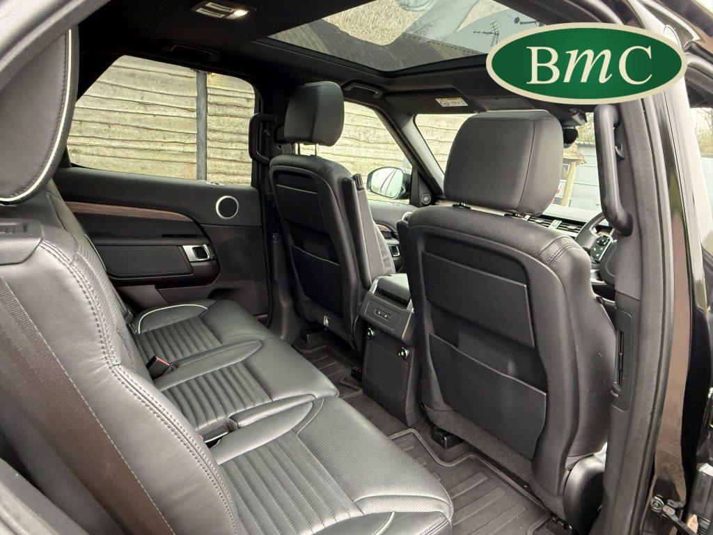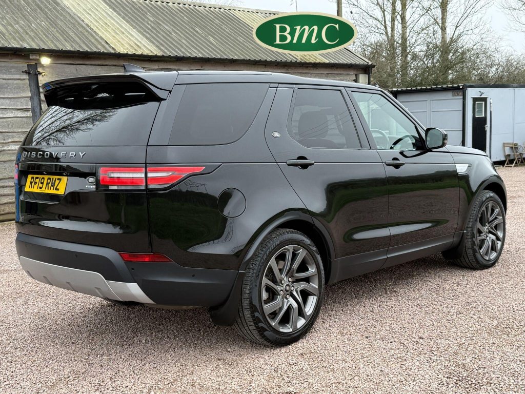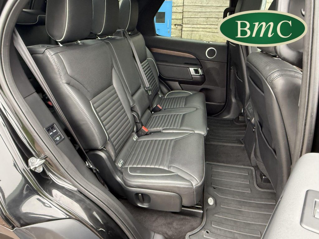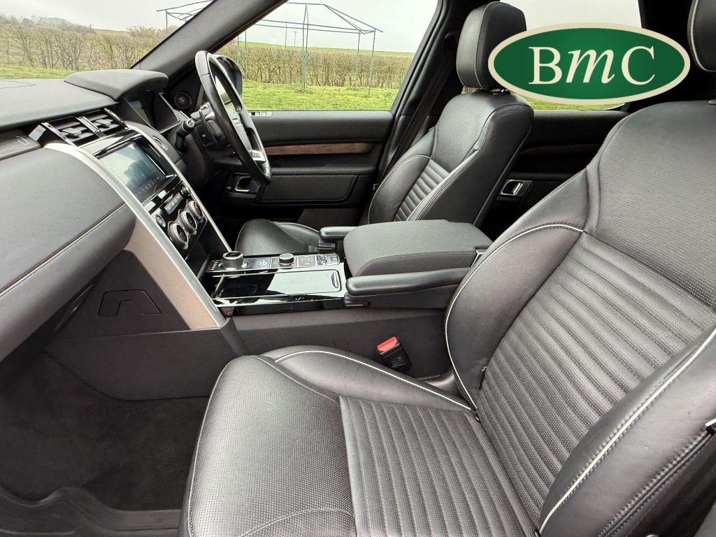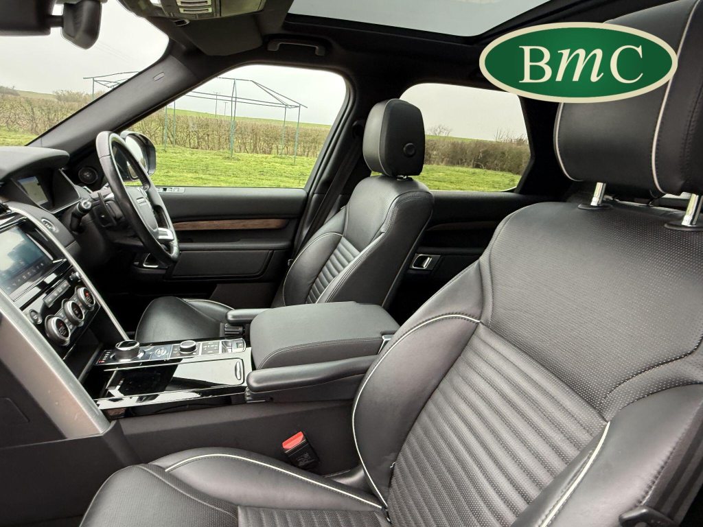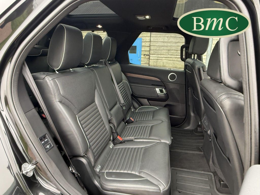 SERVICED @ 7K, 17K, 24K, 30K, 40K 49K & 56K MILES. SANTORINI BLACK MEATALLIC, 21'' ANTHRACITE ALLOY WHEELS WITH PIRELLI SCORPION PREMIUM TYRES, OUR OWN VEHICLE FOR THE LAST 2 YEARS, VERY WELL MAINTAINED! BLACK LEATHER HEATED ELECTRIC MEMORY SEATS WITH WHITE PIPING, HEATDED ELECTRIC REAR SEATS, POWER TAILGATE, KEYLESS, PRIVACY GLASS, REVERSE CAMERA, LEATHER MULTI FUNCTION STEERING WHEEL WITH PADDLE GEAR CHANGE, ELECTRIC STEERING COLUMN, FRONT & REAR PARK SENSORS, MERIDIAN HIFI, STUNNING EXAMPLE.This 2019 Land Rover Discovery SD V6 HSE presents an exceptional opportunity with its remarkably low mileage of just 56,000 miles for its age. This capable seven seat four wheel drive is a Euro 6 compliant model, powered by a robust 3.0 litre diesel engine. The HSE trim level ensures a premium experience, complemented by desirable features such as a Meridian Sound System with Bluetooth connectivity, automatic headlights, and adaptive cruise control with stop and go functionality. Keyless entry adds to the convenience, while the 2 zone automatic climate control maintains a comfortable cabin environment for all occupants.The Discovery's impressive performance is evident in its 0-60mph acceleration time of just 7.0 seconds, a testament to its powerful SD V6 engine. This vehicle also boasts a substantial towing weight of 3500 kg, making it ideal for those who need to tow. Furthermore, its placement in a low insurance group highlights its cost effectiveness. These factors combined indicate that this Land Rover Discovery offers a superior blend of performance, practicality, and value compared to other vehicles in its class.