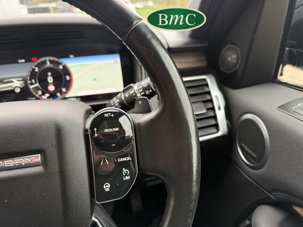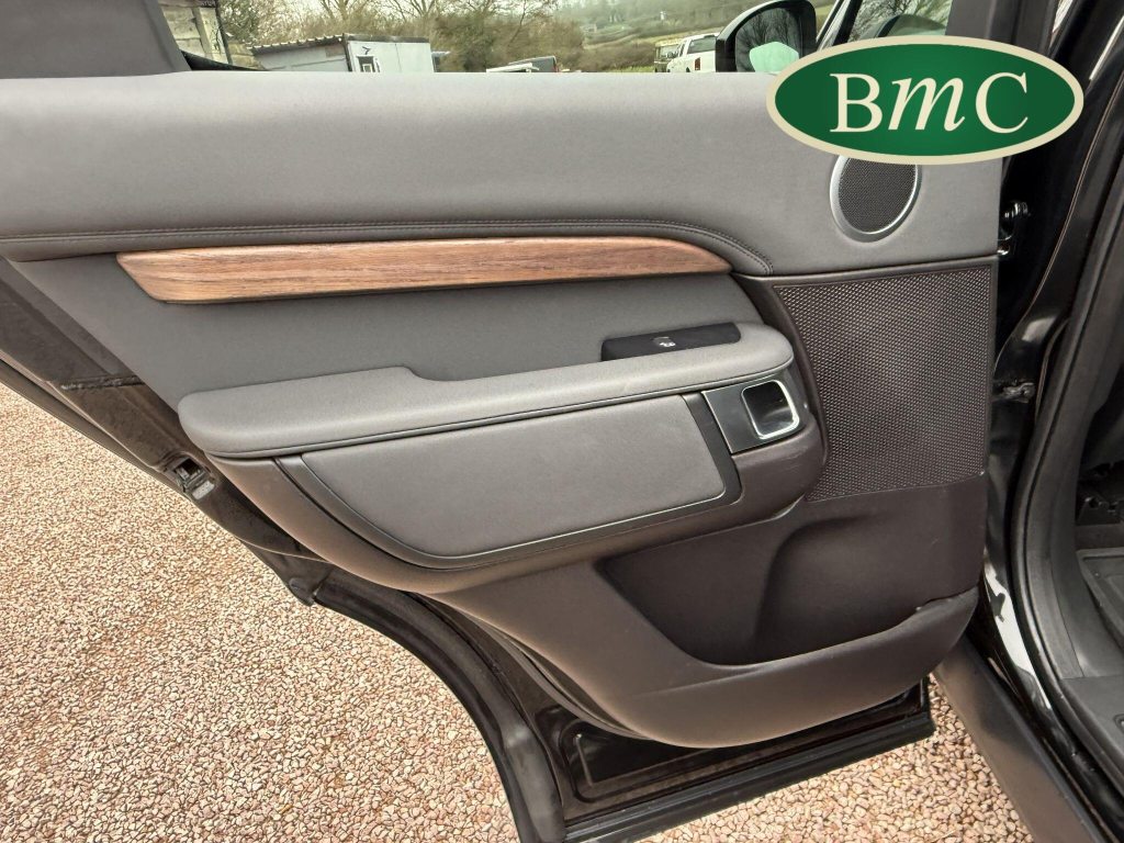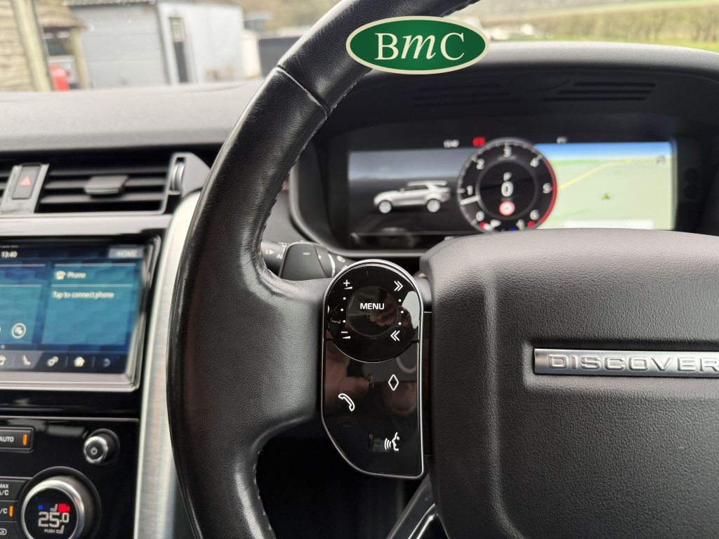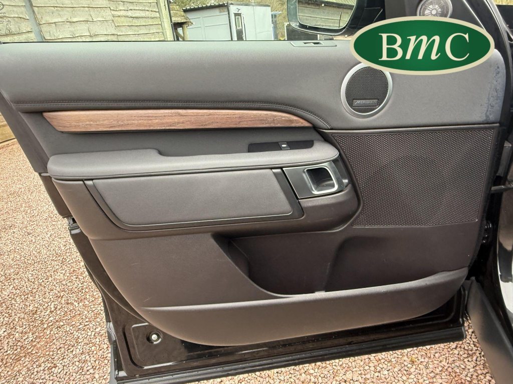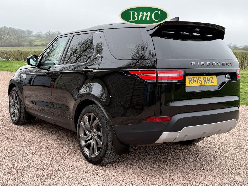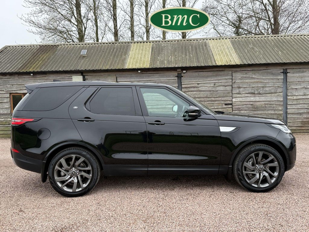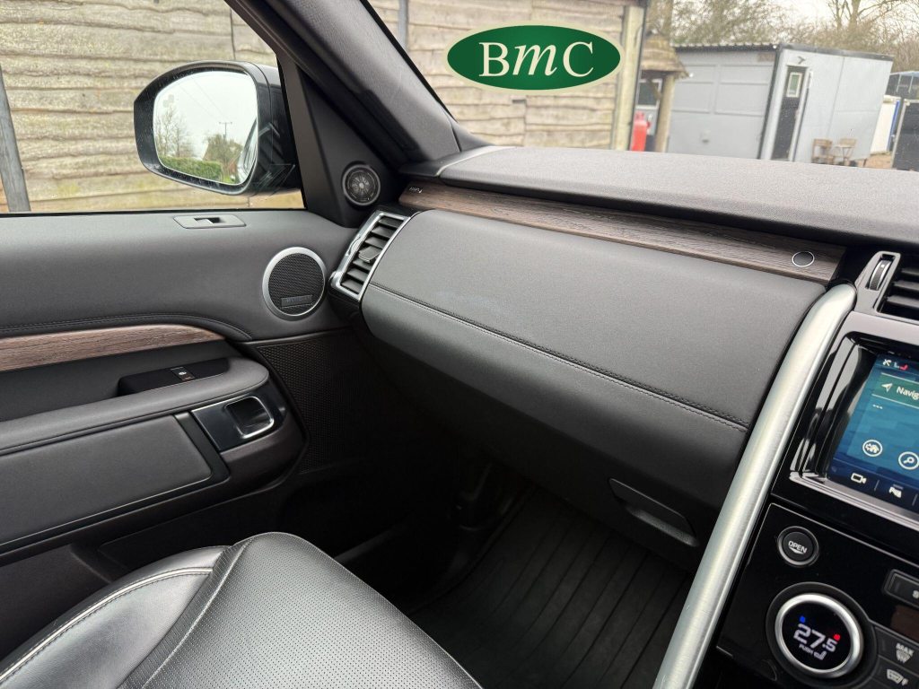 SERVICED @ 7K, 17K, 24K, 30K, 40K 49K & 56K MILES. SANTORINI BLACK MEATALLIC, 21'' ANTHRACITE ALLOY WHEELS WITH PIRELLI SCORPION PREMIUM TYRES, OUR OWN VEHICLE FOR THE LAST 2 YEARS, VERY WELL MAINTAINED! BLACK LEATHER HEATED ELECTRIC MEMORY SEATS WITH WHITE PIPING, HEATDED ELECTRIC REAR SEATS, POWER TAILGATE, KEYLESS, PRIVACY GLASS, REVERSE CAMERA, LEATHER MULTI FUNCTION STEERING WHEEL WITH PADDLE GEAR CHANGE, ELECTRIC STEERING COLUMN, FRONT & REAR PARK SENSORS, MERIDIAN HIFI, STUNNING EXAMPLE.This 2019 Land Rover Discovery SD V6 HSE presents an exceptional opportunity with its remarkably low mileage of just 56,000 miles for its age. This capable seven seat four wheel drive is a Euro 6 compliant model, powered by a robust 3.0 litre diesel engine. The HSE trim level ensures a premium experience, complemented by desirable features such as a Meridian Sound System with Bluetooth connectivity, automatic headlights, and adaptive cruise control with stop and go functionality. Keyless entry adds to the convenience, while the 2 zone automatic climate control maintains a comfortable cabin environment for all occupants.The Discovery's impressive performance is evident in its 0-60mph acceleration time of just 7.0 seconds, a testament to its powerful SD V6 engine. This vehicle also boasts a substantial towing weight of 3500 kg, making it ideal for those who need to tow. Furthermore, its placement in a low insurance group highlights its cost effectiveness. These factors combined indicate that this Land Rover Discovery offers a superior blend of performance, practicality, and value compared to other vehicles in its class.