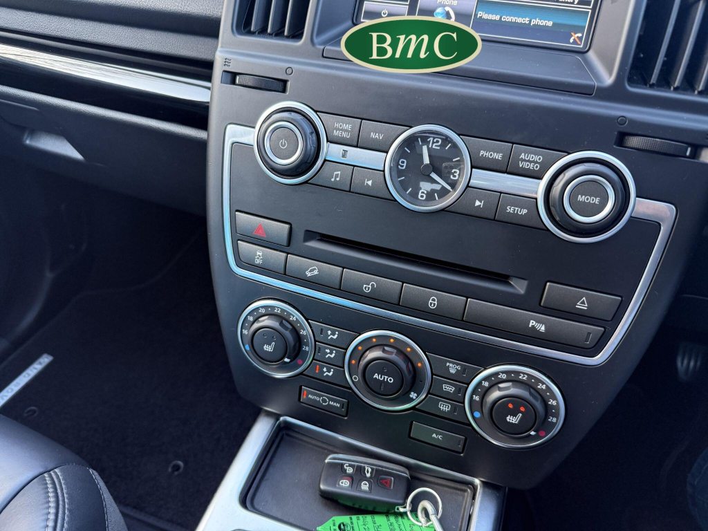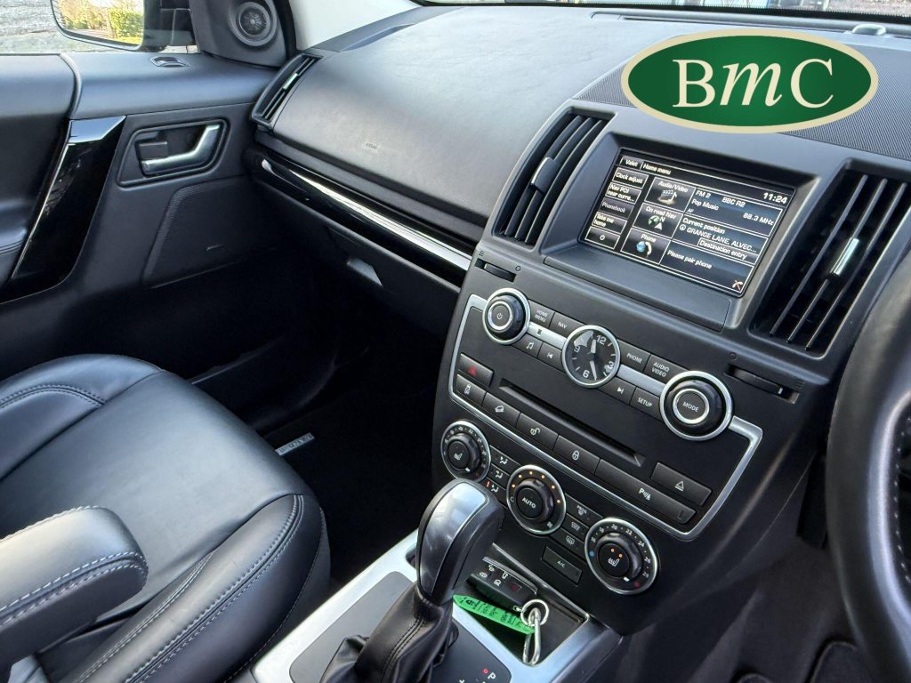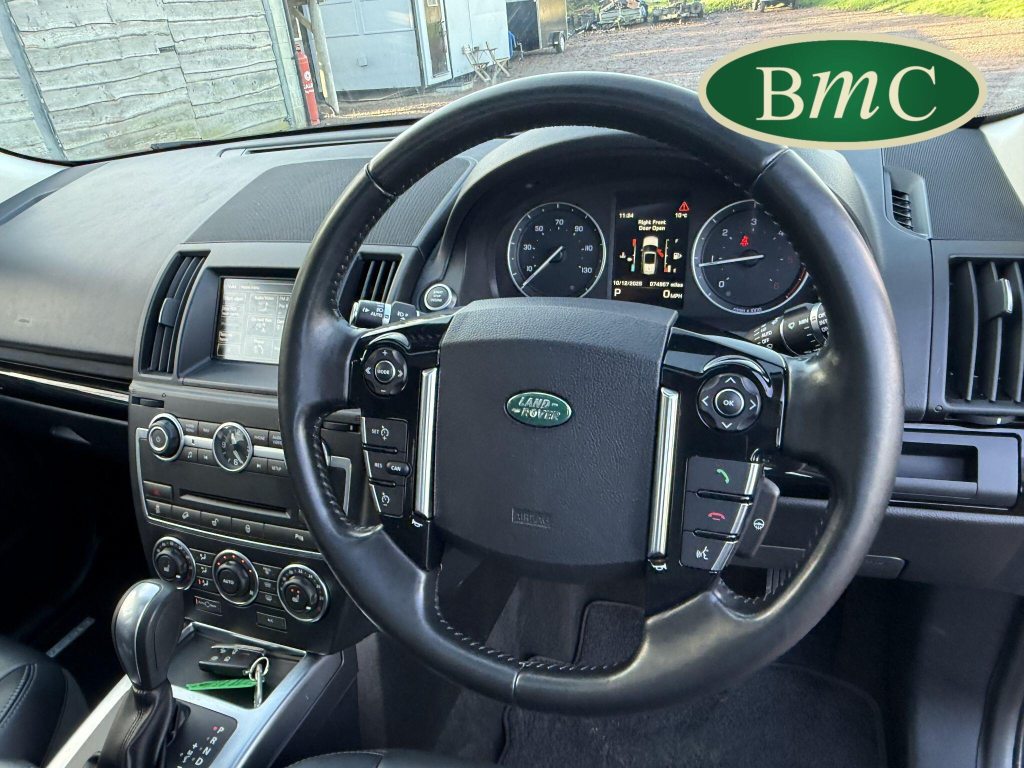 SERVICED @ 9K, 17K, 31K, 37K, 42K, 47K, 56K, 61K, 68K, & 74K MILES. BOTH KEYS AVAILABLE. TOP OF THE RANGE AUTOMATIC FREELANDER 2, WITH A REVERSE CAMERA WITH HITCHING GUIDANCE & PARKING BAR, HEATED LEATHER MULTI FUNCTION STEERING WHEEL, METALLIC PAINT, PRIVACY GLASS, GRAND BLACK LAQUER DASH PACK, BODY SIDE MOULDINGS, PREMIUM CARPET MATS, This 2014 Land Rover Freelander 2 SD4 Metropolis presents a compelling proposition with its remarkably low mileage of just 74,000 miles for its age. This Four Wheel Drive model is equipped with a capable 2.2L Diesel Engine and features the desirable Metropolis trim. Inside, you'll find heated seats for both the driver and front passenger, ensuring comfort in all conditions. Parking is made easier with front and rear parking aids, while the Xenon headlights with automatic levelling and LED signature lights provide excellent visibility.The Freelander 2 SD4 Metropolis offers a refined driving experience, highlighted by its impressive acceleration of 0 to 60mph in just 8.7 seconds. This performance, combined with its substantial boot space, makes it a practical choice for various needs. The premium 825W Meridian Sound System, featuring 17 speakers and a 7-inch touch screen, elevates the in car entertainment, setting it apart from many other vehicles in its class.