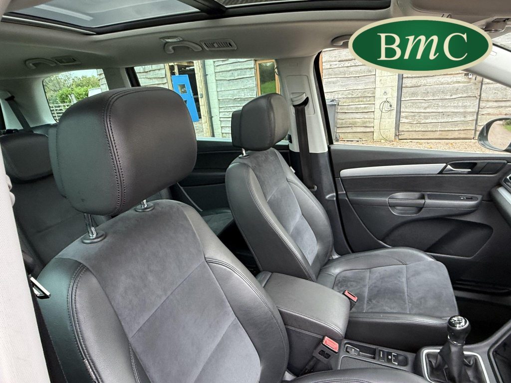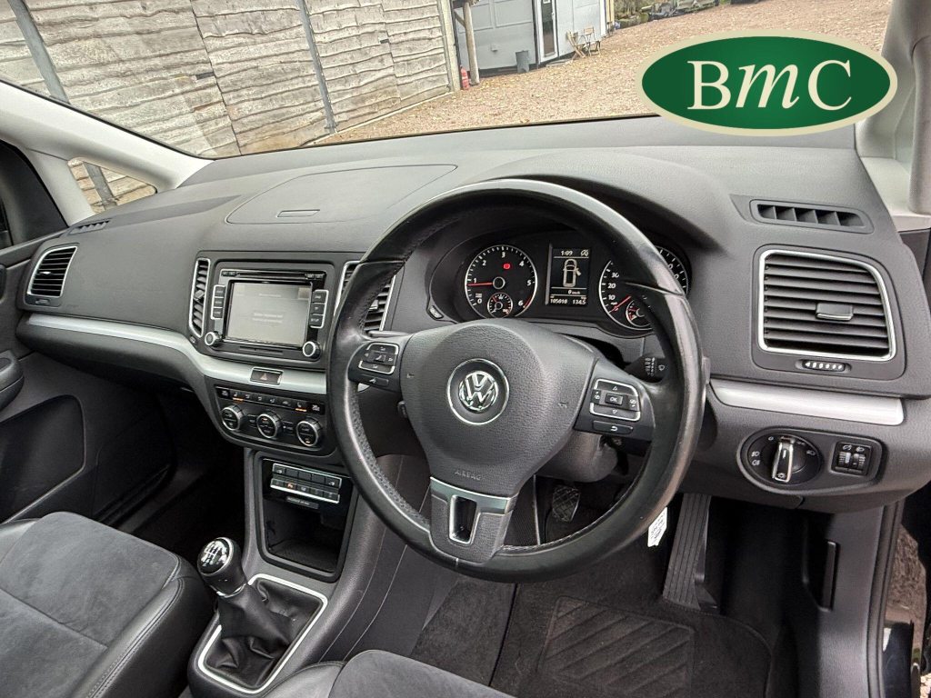 SERVICED @ 6K, 16K, 25K, 34K, 44K, 53K, 57K (CAM BELT & WATER PUMP, 59K, 68K, 78K, 95K @ 105K MILES!! 12 SERVICES!! LEASE COPMPANY OWNED FROM NEW MAINTAINANCE PRINT OUT & SERVICE BOOK WITH VEHICLE! MOT 2ND OF SEPTEMBER 2026 WITH 1 ADVISORY ( TYRE HAS BEEN REPLACED). PANORAMIC SUNROOF, HEATED LEATHER SUEDE 7 SEATS, ELECTRIC SLIDE SIDE DOORS, PRIVACY GLASS.This 2014 Volkswagen Sharan TDI SEL offers a spacious and versatile driving experience, perfect for families or those needing ample room. Powered by a robust 2.0 litre diesel engine, this seven seater boasts a generous towing weight of 2200 kg, making it capable of handling various needs. Convenience is key with this model, featuring electric rear sliding doors for easy access, and Park Assist to simplify parking manoeuvres. The SEL trim also includes a dusk sensor for automatic headlights, front parking sensors for added awareness, and Bluetooth telephone preparation to keep you connected on the go.Experience impressive performance with the Sharan's 0-62mph acceleration in just 9.3 seconds, demonstrating its strong capability. These features collectively highlight how this Volkswagen Sharan stands out, offering a blend of practicality, comfort, and advanced technology that enhances your daily journeys.