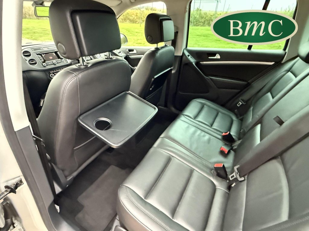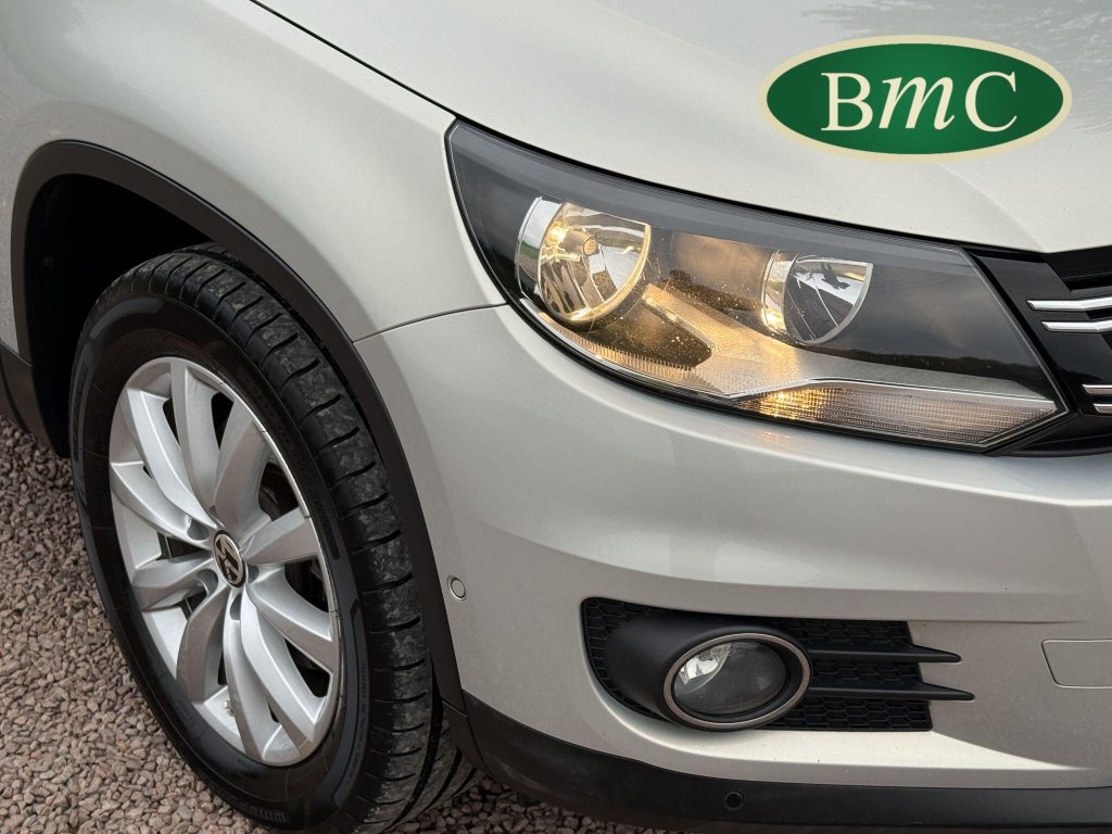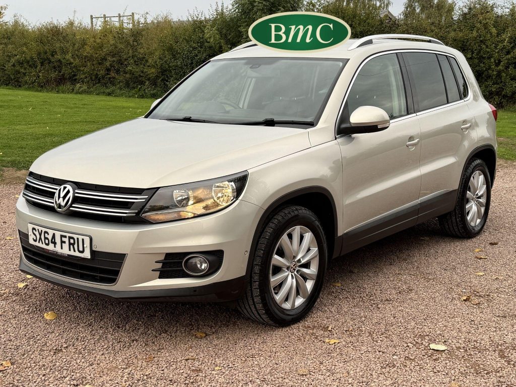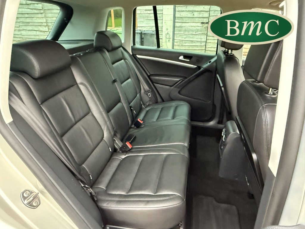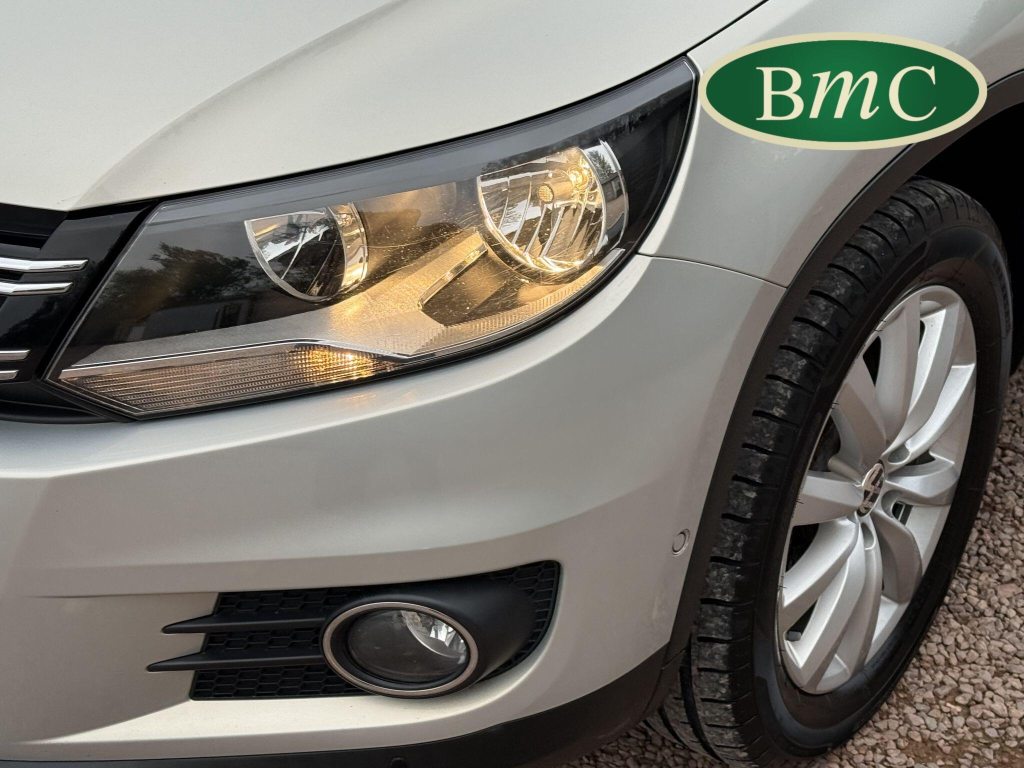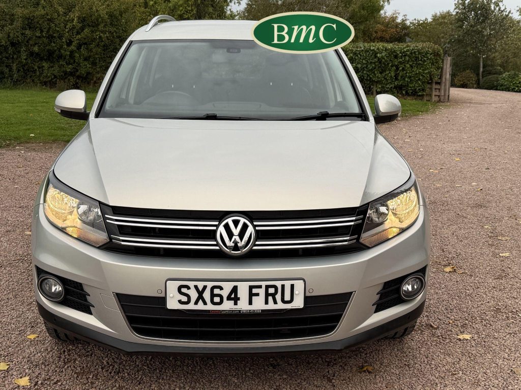 SERVICED AT 9K, 19K,28K, 38K, 45K, 52K, 58K (CAM BELT & WATER PUMP), 61K,67K, 72K, 77K & 92K MILES, JUST SERVICED HERE @ BMC. FULL MOT.BOTH KEYS. VW FITTED RETRACTABLE TOW BAR, BLACK LEATHER HEATED ELECTRIC HEATED SEATS, CRUISE CONTROL, SATELLITE NAVIGATION, DAB DIGITAL RADIO, BLUETOOTH, SELF PARKING ASSISTANT, TYRE PRESSURE MONITORING, FRONT & REAR PARK SENSORS, PRIVACY GLASS, SUPERB EXAMPLE!This 2014 Volkswagen Tiguan TDI Match offers excellent peace of mind with its MOT valid until November 2025. This capable Four Wheel Drive SUV is powered by an efficient 2.0 litre diesel engine and boasts a generous towing weight of 2500 kg, making it a versatile choice for various needs. Inside, you'll find a comfortable and convenient cabin featuring Bluetooth telephone preparation for seamless connectivity, 2 zone electronic climate control for personalised comfort, and a dusk sensor for automatic headlights.The Tiguan TDI Match is further enhanced by its advanced parking systems, including front and rear parking sensors and Park Assist, which simplify manoeuvring in tight spaces. These features, along with the automatic driving lights, demonstrate a higher level of specification compared to many similar vehicles. The impressive 0-62mph acceleration in just 8.5 seconds highlights the responsive performance of this well equipped Volkswagen.