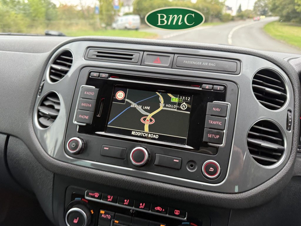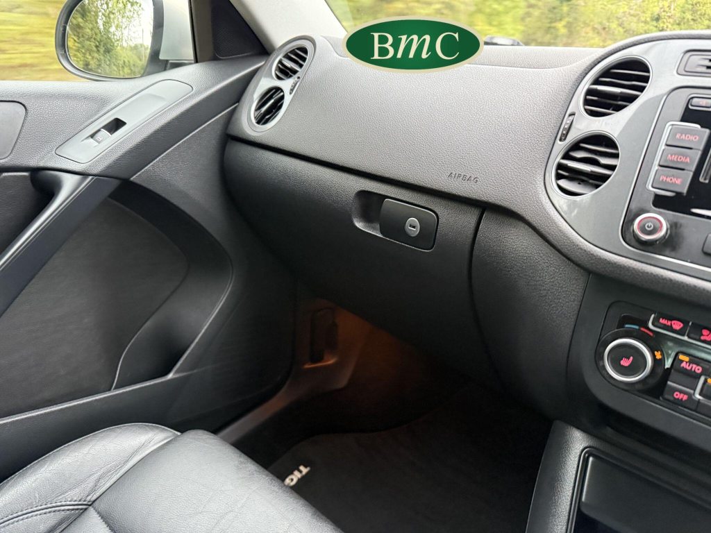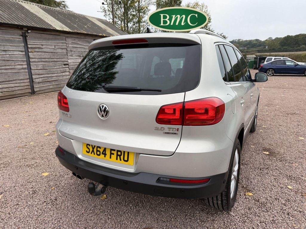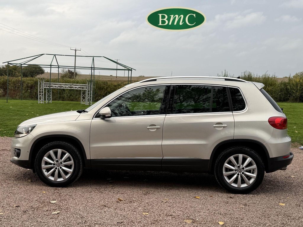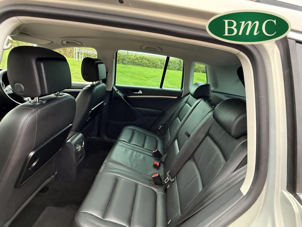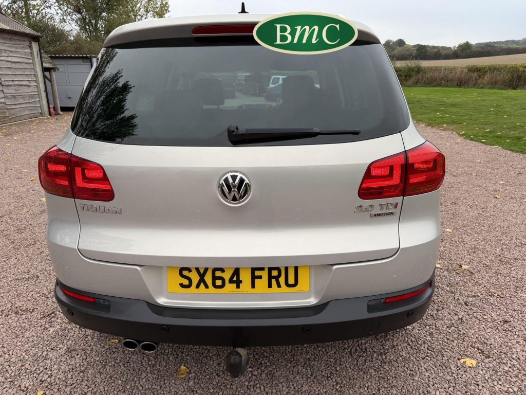 SERVICED AT 9K, 19K,28K, 38K, 45K, 52K, 58K (CAM BELT & WATER PUMP), 61K,67K, 72K, 77K & 92K MILES, JUST SERVICED HERE @ BMC. FULL MOT.BOTH KEYS. VW FITTED RETRACTABLE TOW BAR, BLACK LEATHER HEATED ELECTRIC HEATED SEATS, CRUISE CONTROL, SATELLITE NAVIGATION, DAB DIGITAL RADIO, BLUETOOTH, SELF PARKING ASSISTANT, TYRE PRESSURE MONITORING, FRONT & REAR PARK SENSORS, PRIVACY GLASS, SUPERB EXAMPLE!This 2014 Volkswagen Tiguan TDI Match offers excellent peace of mind with its MOT valid until November 2025. This capable Four Wheel Drive SUV is powered by an efficient 2.0 litre diesel engine and boasts a generous towing weight of 2500 kg, making it a versatile choice for various needs. Inside, you'll find a comfortable and convenient cabin featuring Bluetooth telephone preparation for seamless connectivity, 2 zone electronic climate control for personalised comfort, and a dusk sensor for automatic headlights.The Tiguan TDI Match is further enhanced by its advanced parking systems, including front and rear parking sensors and Park Assist, which simplify manoeuvring in tight spaces. These features, along with the automatic driving lights, demonstrate a higher level of specification compared to many similar vehicles. The impressive 0-62mph acceleration in just 8.5 seconds highlights the responsive performance of this well equipped Volkswagen.