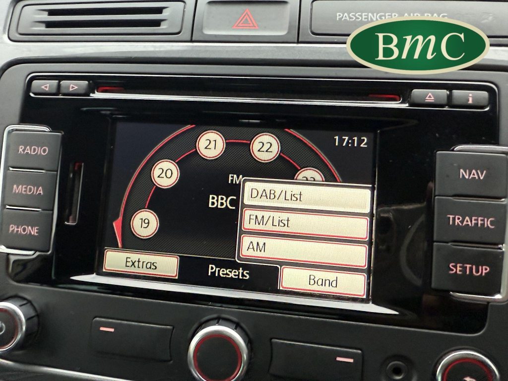 12V Socket - Centre Console, 12V Socket - Luggage Compartment, 17in Alloy Wheels - New Orleans, 2 Zone Electronic Climate Control with Automatic Air Recirculation, ABS - Anti-Lock Braking System, ASR - Anti Slip Regulation, Air Vent Surrounds - Steel Finish, Airbags - Curtain, Airbags - Driver, Airbags - Front Passenger, Airbags - Front Passenger with Deactivation Switch, Airbags - Front Seat Side Impact, Alarm with Interior Protection, Armrest - Front Centre with Storage Compartment, Automatic Dimming Rear View Mirror, Aux-In Socket, Bluetooth Telephone Preparation, Body Coloured Bumpers, Body Coloured Door Handles, Body-Coloured Door Mirrors with Integrated Indicators, Central Locking - Remote with 2 Remote Keys, Chrome Trimmed Front Air Intake Grille Surround, Colour Screen - 5in, Cup Holders - Front x2 Rear x1, Cup Holders - Rear x2, Dash-mounted MP3 Compatible CD Player, Dashboard and Centre Console - Anthracite Metallic, Differential Lock - Electronic, Door Mirrors - Electrically Adjustable and Heated, Driver Alert System, EBD - Electronic Brake Pressure Distribution, ESP - Electronic Stability Programme, Electric Windows - Front and Rear, Electronic Engine Immobiliser, Electronic Parking Brake with Auto Hold Function, Flat Tyre Indicator, Folding Front Seat Backrest, Folding Table on Back of Front Seats, Footwell Illumination - Front, Front Fog Lights with Cornering Lights, Front Seat Back Storage Pockets, Front Sports Seats, Glovebox - Cooled and Lockable, Head Restraints - Front Whiplash Optimised, Headlights - Coming-Leaving Home Function, Headlights - Dusk Sensor - Automatic Driving Lights, Headlights - Halogen Clear - Range Adjustable, Heated Rear Window, Height and Reach Adjustable Steering Column, High Level 3rd Brake Light, ISOFIX Child Seat Preparation for 2 Rear Seats, Instrument Lighting - White Adjustable Panel Illumination, Interior Light Delay, Interior Lighting Delay, Lights on Warning Buzzer, Load-Through Provision, Luggage Compartment Cover - Removable, Luggage Compartment Light, Luggage Compatrment - Load Lashing Points x5, MDI - Multi Device Interface with USB - iPod Connection Cables, Multifunction Computer, Park Assist including Parking Sensors Front and Rear, Parking Sensors - Front, Parking Sensors - Rear, Power Assisted Steering - Speed Sensitive, RNS 315 Touch Screen Satellite Navigation and DAB Radio System, Radiator Grille - Black with Chrome Louvres, Rain Sensor, Reading Lights - Front x2, Rear Wash Wipe with Intermittent Wipe, Rigid Safety Cell with Front and Rear Crumple Zones, Roof Rails - Chrome Plated, SD Card Reader, Seatbelt Reminder, Seats - Front Lumbar Support, Seats - Split Folding Rear Backrests 60-40 - Sliding and Reclining, Side Window Surrounds - Chrome, Side and Rear Protection Pack - Black with Chrome-Plated Insert, Silver Metallic Decorative Inserts in Door Panels, Spare Wheel - Space Saver Steel, Speakers x8, Split Folding Rear Backrests 60-40, Steering Wheel - 3-Spoke - Leather Trimmed, Steering Wheel - Multifunction Leather Trimmed, Storage Compartment in Drivers Door for 1.0 litre bottle, Storage Compartment in Passengers Door for 1.5 Litre Bottle, Storage Compartment in Roof Console, Storage Tray in Centre Console, Storage Tray on Dashboard, Sun Visors - Vanity Mirrors and Illuminated, Tinted Glass - Heat Insulating Rear 65 Percent Light Absorbing from B Pillar Backwards, Tyre Pressure Indicator, Under Seat Drawers - Front, Unique BlueMotion Technology Badging, Warning Triangle, Windscreen Wipers with Intermittent Wipe and 4 Position Delay, Vienna Leather - Titan Black, Winter Pack, Cruise Control, Tyre Pressure Monitoring System - Electronic, Towbar, Carpet Mats - Front and Rear