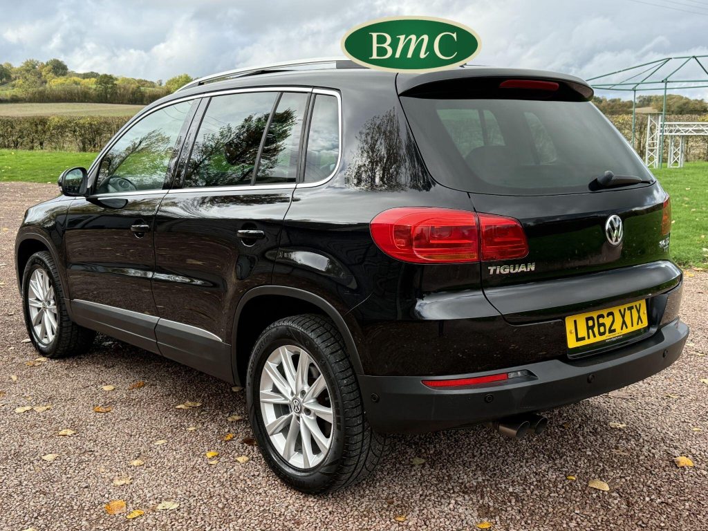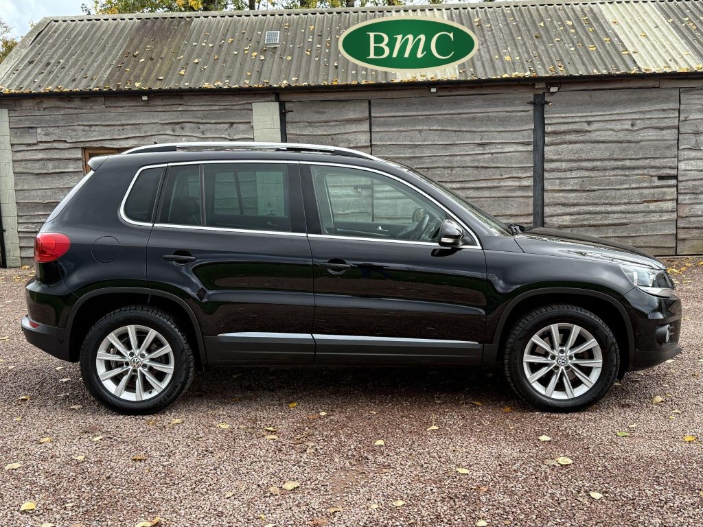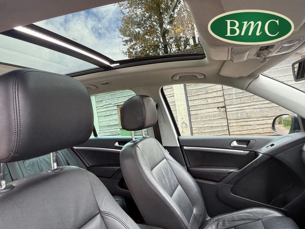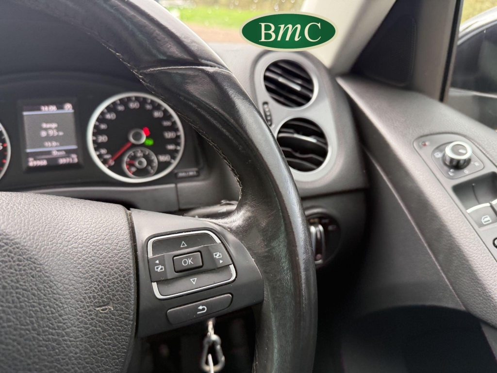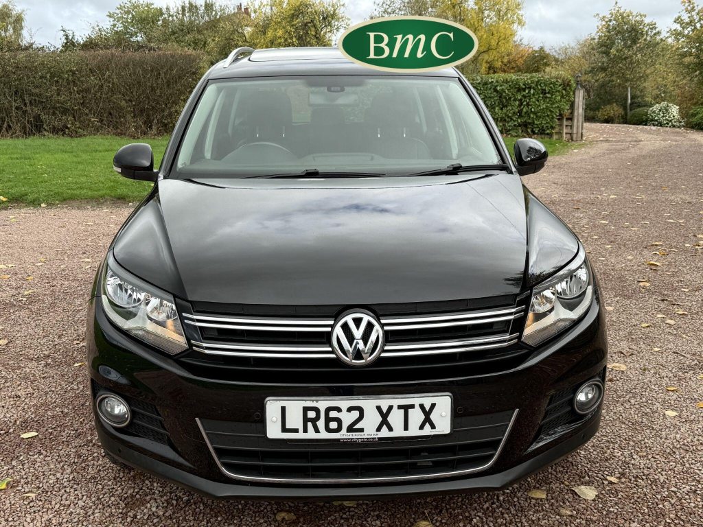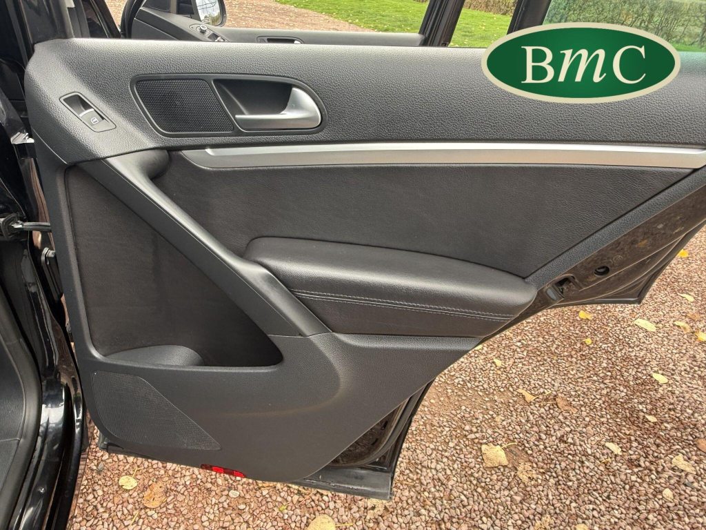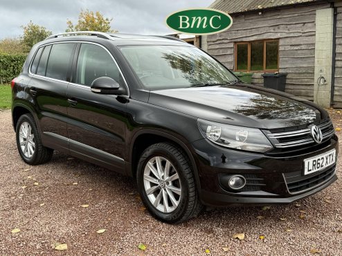 SERVICED @ 4K, 11K, 14K, 18K, 21K, 28K, 31K, 36K, 38K, 41K & 46K MILES. GREAT SERVICE HISTORY. 2 OWNERS FROM NEW. BOTH REMOTE KEYS. PANORAMIC SUNROOF. BLACK LEATHER HEATED ELECTRC TRIM, REVERSE CAMERA, BLUETOOTH, PRIVACY GLASS, CRUISE CONTROL, SPACE SAVER SPARE WHEEL, SELF PARKING ASSISTANT, FRONT & REAR PARK SENSORS, STUNNING EXAMPLE!Boasting exceptionally low mileage for its age, this 2012 Volkswagen Tiguan TDI SE presents a superb ownership proposition. With only two previous owners and a mere 49,000 miles on the clock, this four wheel drive model is powered by an efficient 2.0 litre diesel engine. Its MOT is valid until April 2026, and it was last serviced on 2nd April 2025 at 46,017 miles, underscoring its excellent provenance. Inside, you'll find luxurious Vienna Leather upholstery in Titan Black, a panoramic sunroof that opens up the cabin, and a Winter Pack featuring heated seats for added comfort. Practicality is enhanced by cruise control and park assist, complete with front and rear parking sensors.This Tiguan TDI SE is also equipped to handle your towing needs, with a towing weight of 2500 kg. Its low insurance group rating further adds to its appeal, suggesting lower running costs compared to similar vehicles. The combination of its comprehensive service history, minimal owner count, and desirable features like the panoramic sunroof and Vienna leather, clearly sets this Volkswagen Tiguan apart from others on the market.