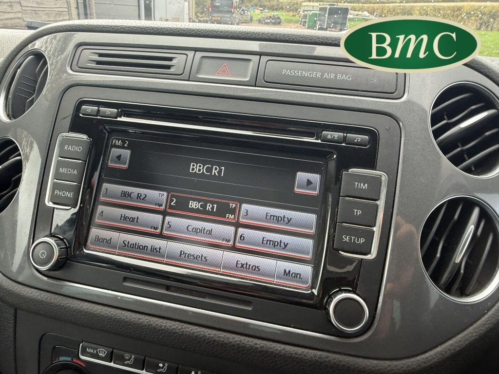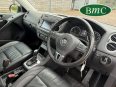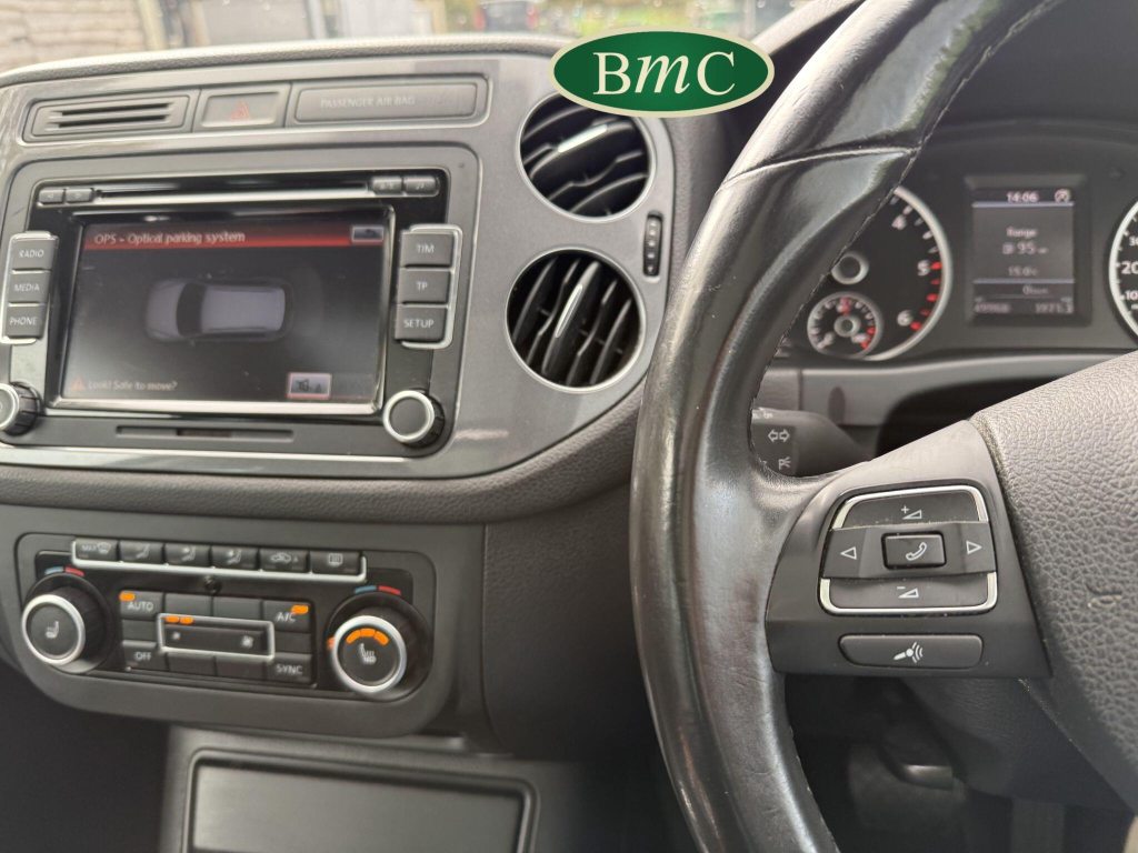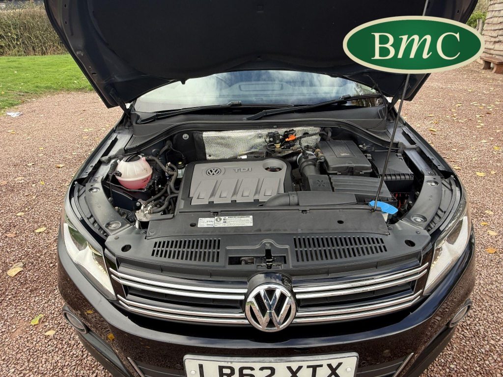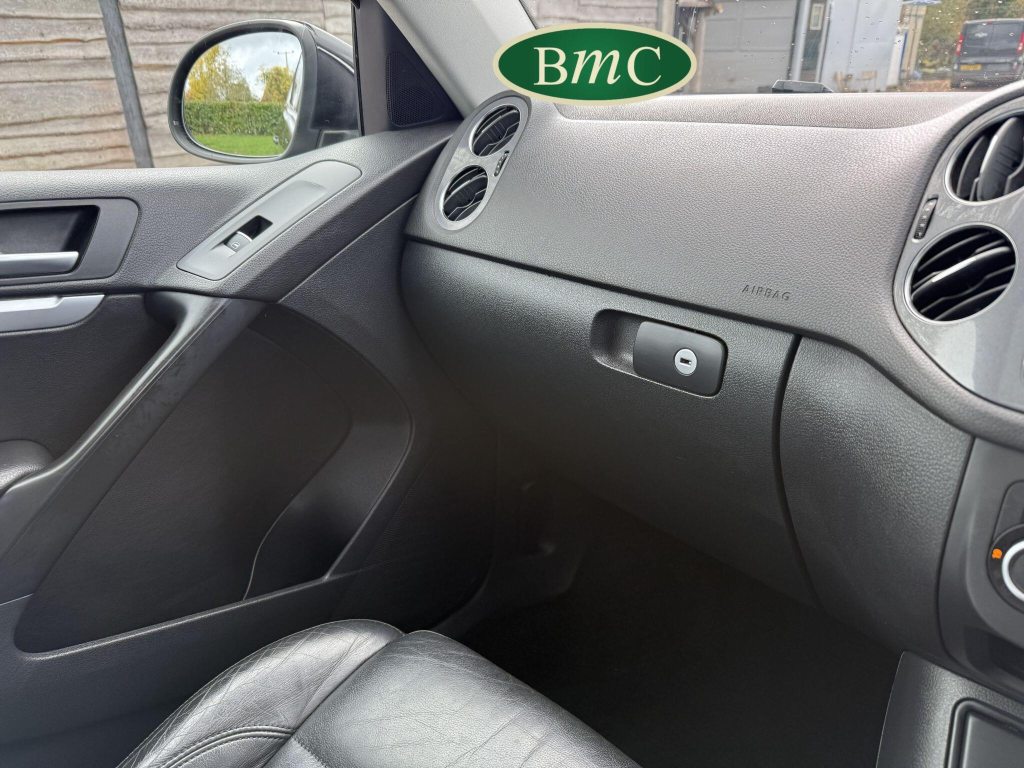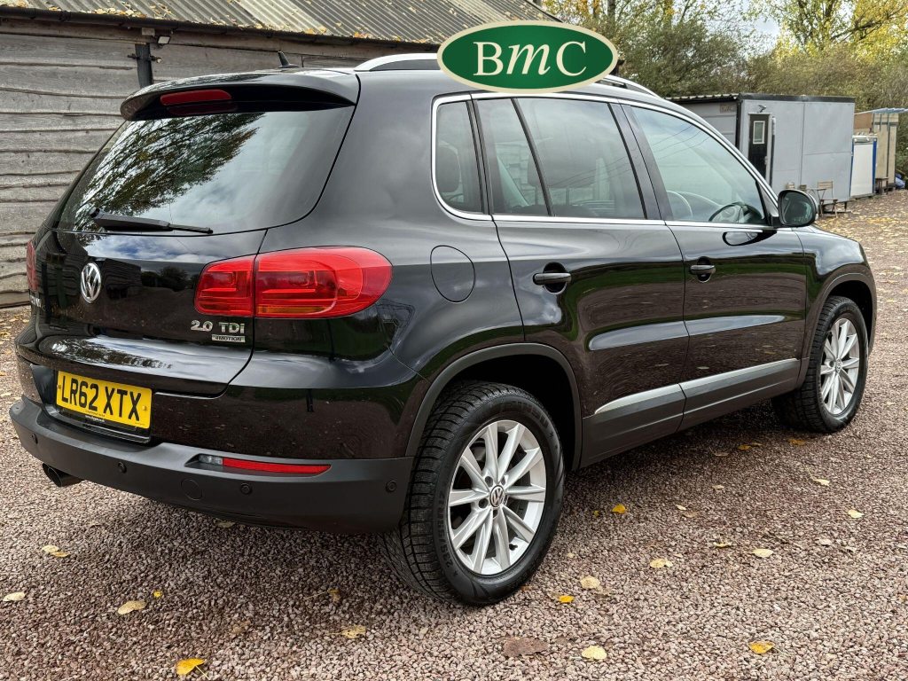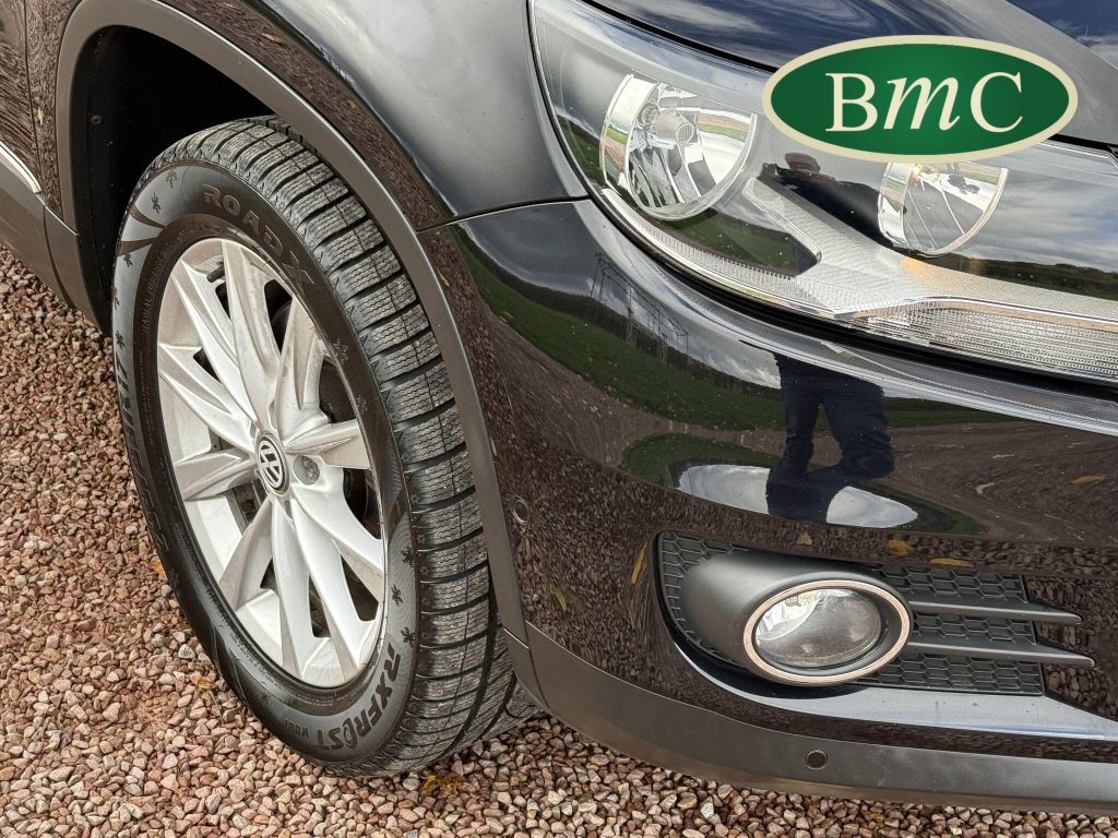 SERVICED @ 4K, 11K, 14K, 18K, 21K, 28K, 31K, 36K, 38K, 41K & 46K MILES. GREAT SERVICE HISTORY. 2 OWNERS FROM NEW. BOTH REMOTE KEYS. PANORAMIC SUNROOF. BLACK LEATHER HEATED ELECTRC TRIM, REVERSE CAMERA, BLUETOOTH, PRIVACY GLASS, CRUISE CONTROL, SPACE SAVER SPARE WHEEL, SELF PARKING ASSISTANT, FRONT & REAR PARK SENSORS, STUNNING EXAMPLE!Boasting exceptionally low mileage for its age, this 2012 Volkswagen Tiguan TDI SE presents a superb ownership proposition. With only two previous owners and a mere 49,000 miles on the clock, this four wheel drive model is powered by an efficient 2.0 litre diesel engine. Its MOT is valid until April 2026, and it was last serviced on 2nd April 2025 at 46,017 miles, underscoring its excellent provenance. Inside, you'll find luxurious Vienna Leather upholstery in Titan Black, a panoramic sunroof that opens up the cabin, and a Winter Pack featuring heated seats for added comfort. Practicality is enhanced by cruise control and park assist, complete with front and rear parking sensors.This Tiguan TDI SE is also equipped to handle your towing needs, with a towing weight of 2500 kg. Its low insurance group rating further adds to its appeal, suggesting lower running costs compared to similar vehicles. The combination of its comprehensive service history, minimal owner count, and desirable features like the panoramic sunroof and Vienna leather, clearly sets this Volkswagen Tiguan apart from others on the market.