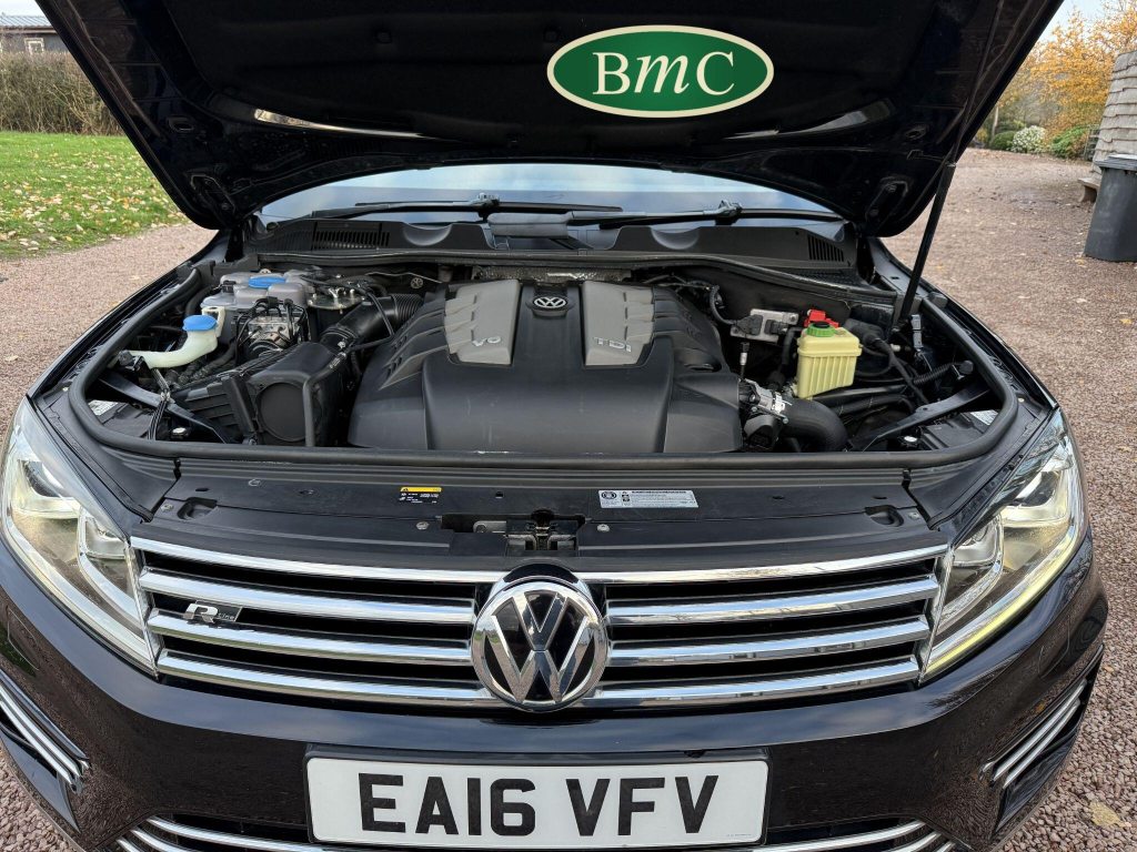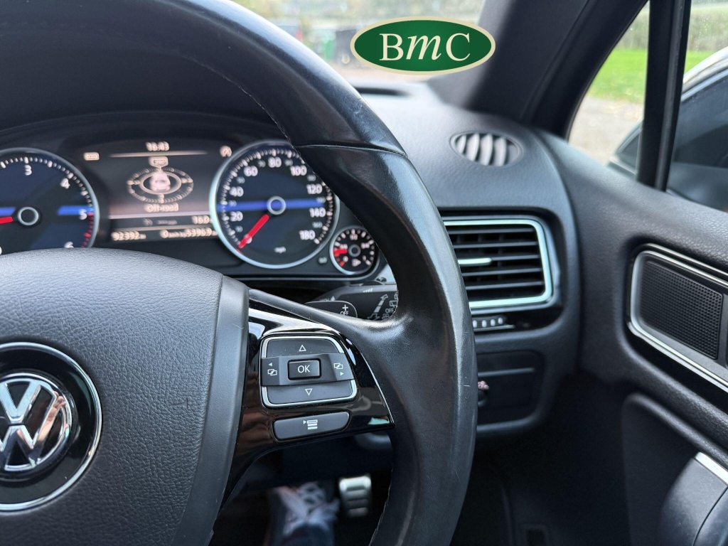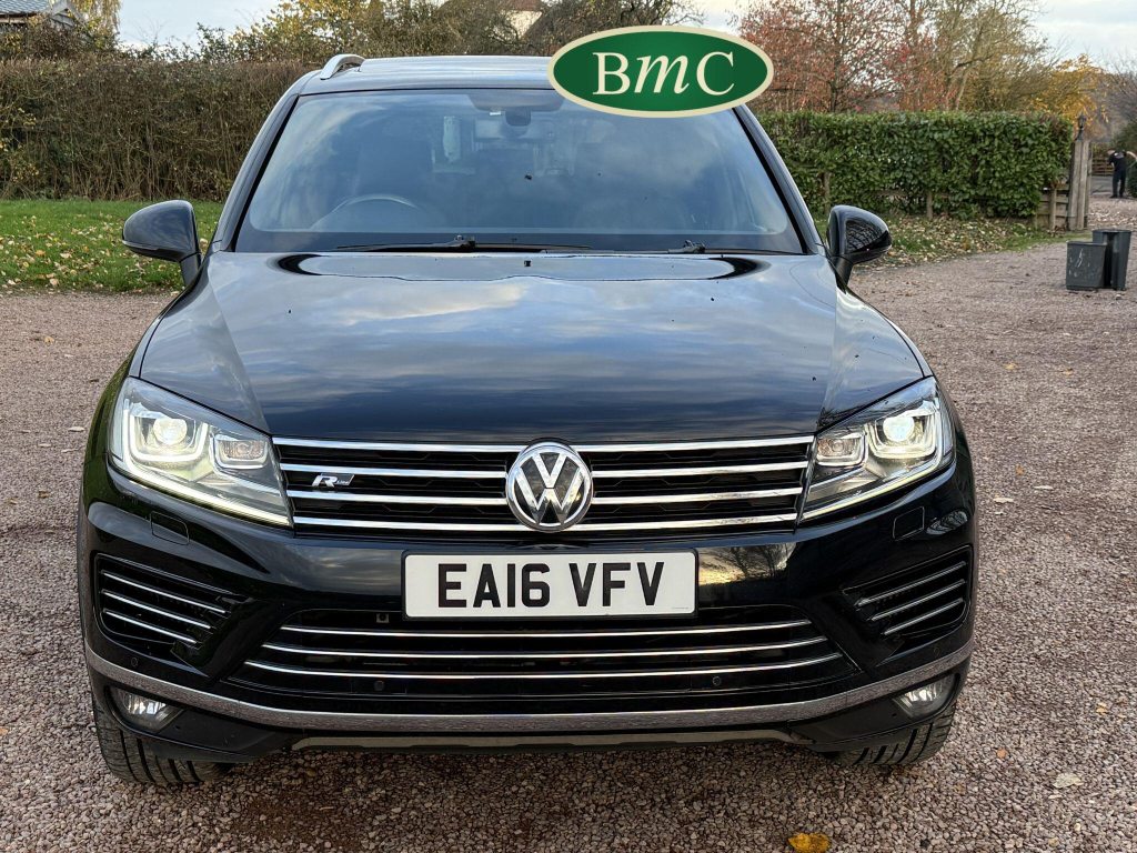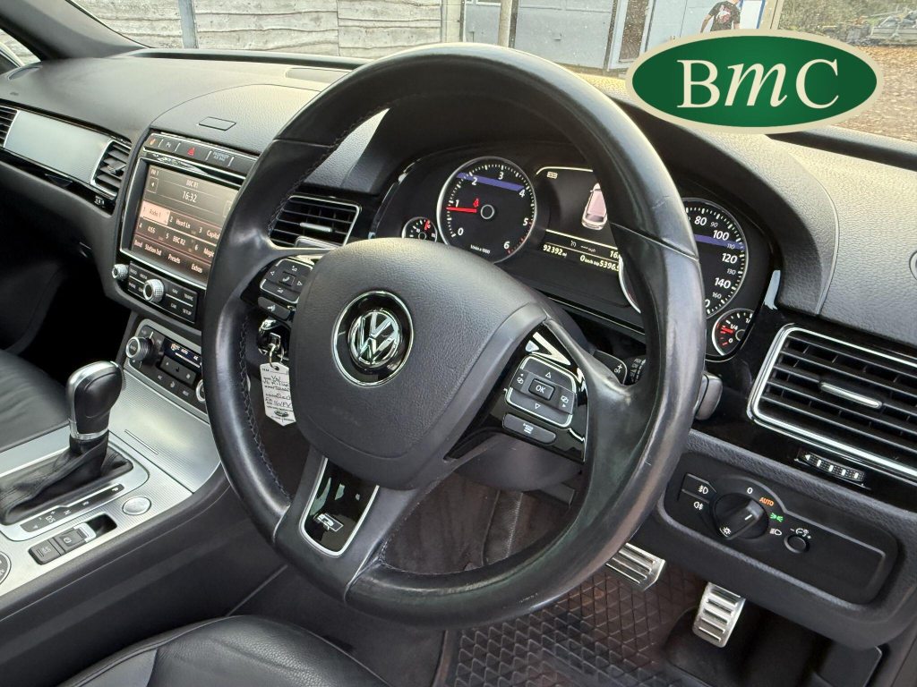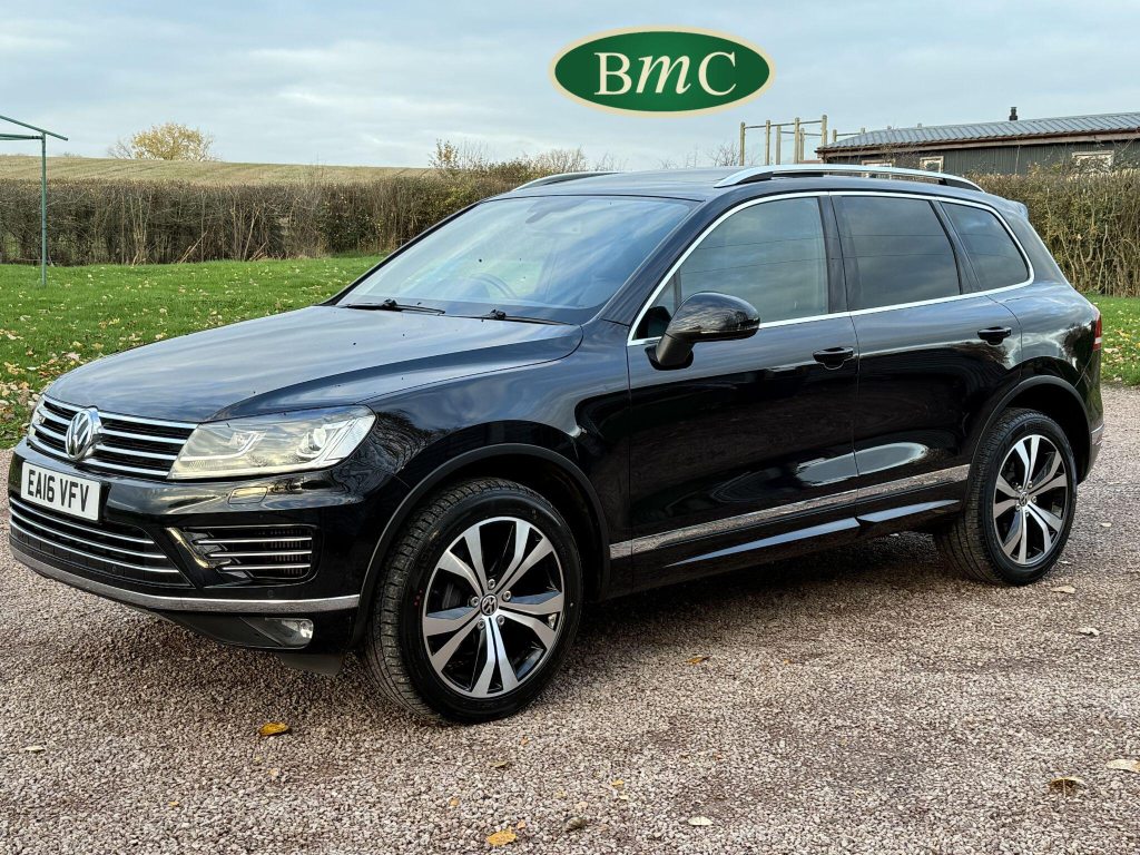 2 OWNERS FROM NEW, LAST OWNER HAS HAD THE CAR SINCE JANUARY 2017. SERVICED @ 19K, 29K, 44K, 65K, 75K & 92K. 2 NEW FRONT TYRES JUST FITTED. BOTH KEYS. This 2016 Volkswagen Touareg TDI V6 R Line boasts an exceptional service history, with its last service completed on 21st October 2025 at 92,340 miles, and an MOT valid until May 2026, offering peace of mind for its next owner. This four wheel drive, Euro 6 compliant model features a powerful 3.0 litre diesel engine and an impressive towing weight of 3500 kg. With only two previous owners, this R Line trim vehicle comes equipped with desirable features including rear parking sensors with parking assistance, an electric and sliding glass panoramic sunroof, keyless entry, and automatic dusk sensing headlights with a coming and leaving home function. Inside, you will appreciate the 2 zone electronic climate control with automatic air recirculation, ensuring a comfortable cabin environment for all occupants.The Volkswagen Touareg TDI V6 R Line offers a compelling blend of performance and practicality. Its acceleration from 0 to 62 miles per hour in just 7.3 seconds demonstrates its dynamic capability, a performance that sets it apart from many vehicles in its class. Furthermore, the generous boot space makes it an ideal choice for families or those who require ample storage for luggage or equipment. This vehicle also benefits from a low insurance group, which can contribute to lower running costs, making it an even more attractive proposition for potential buyers seeking a capable and well equipped SUV.