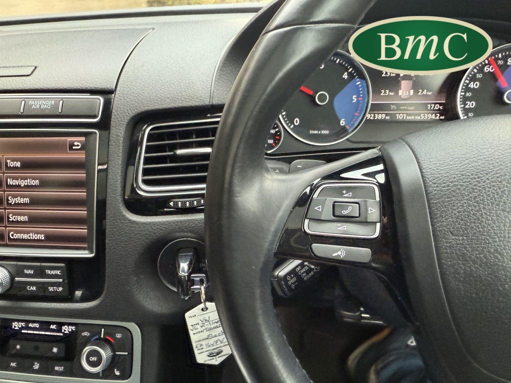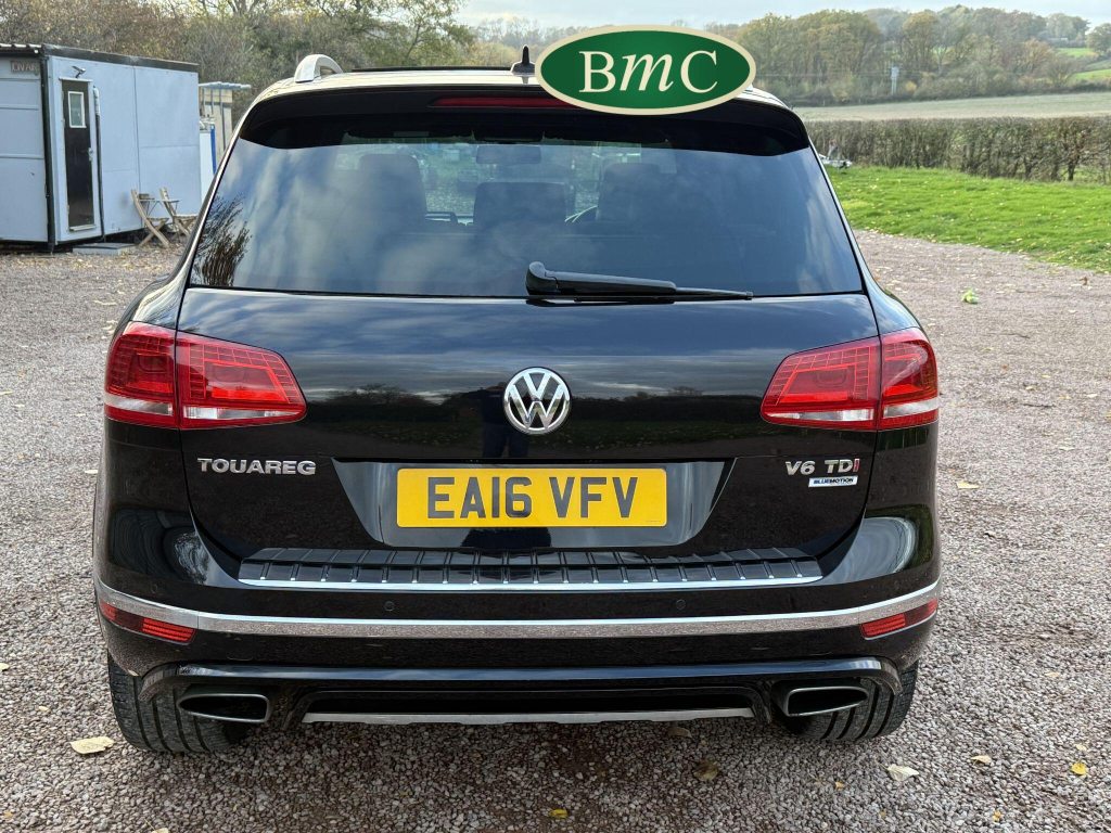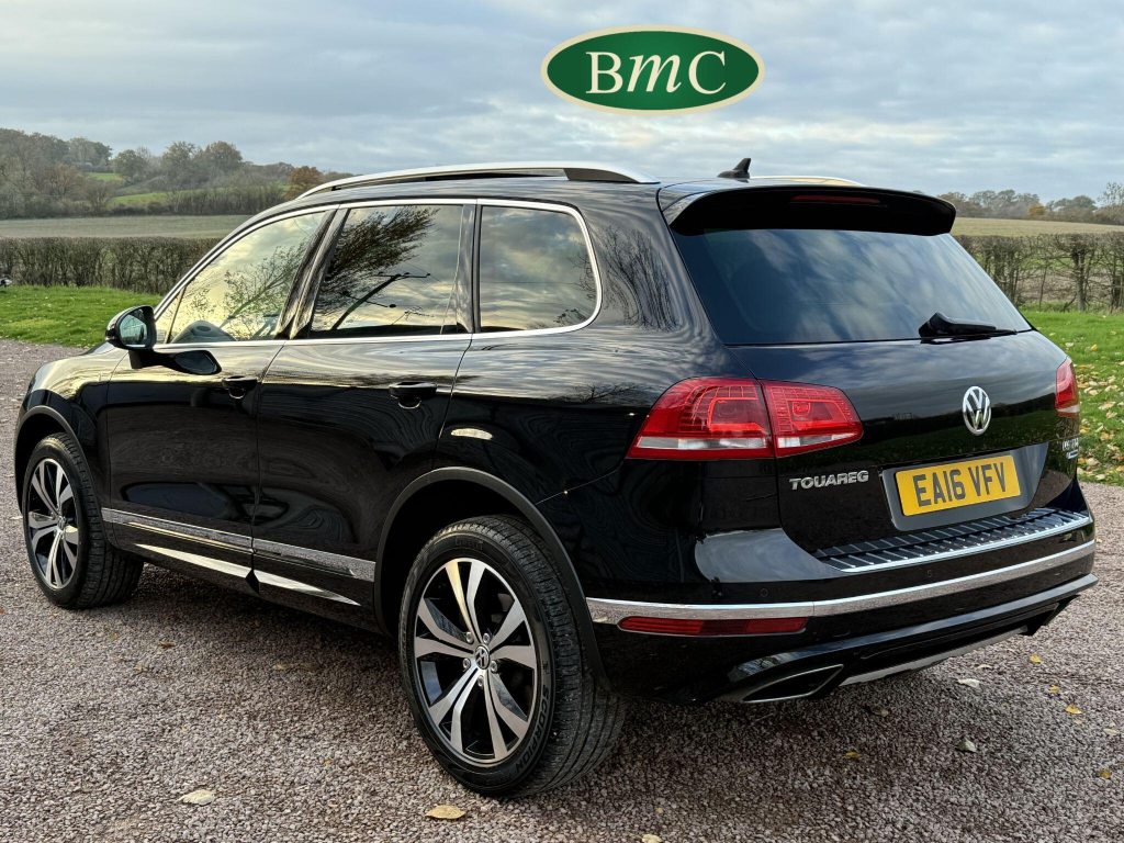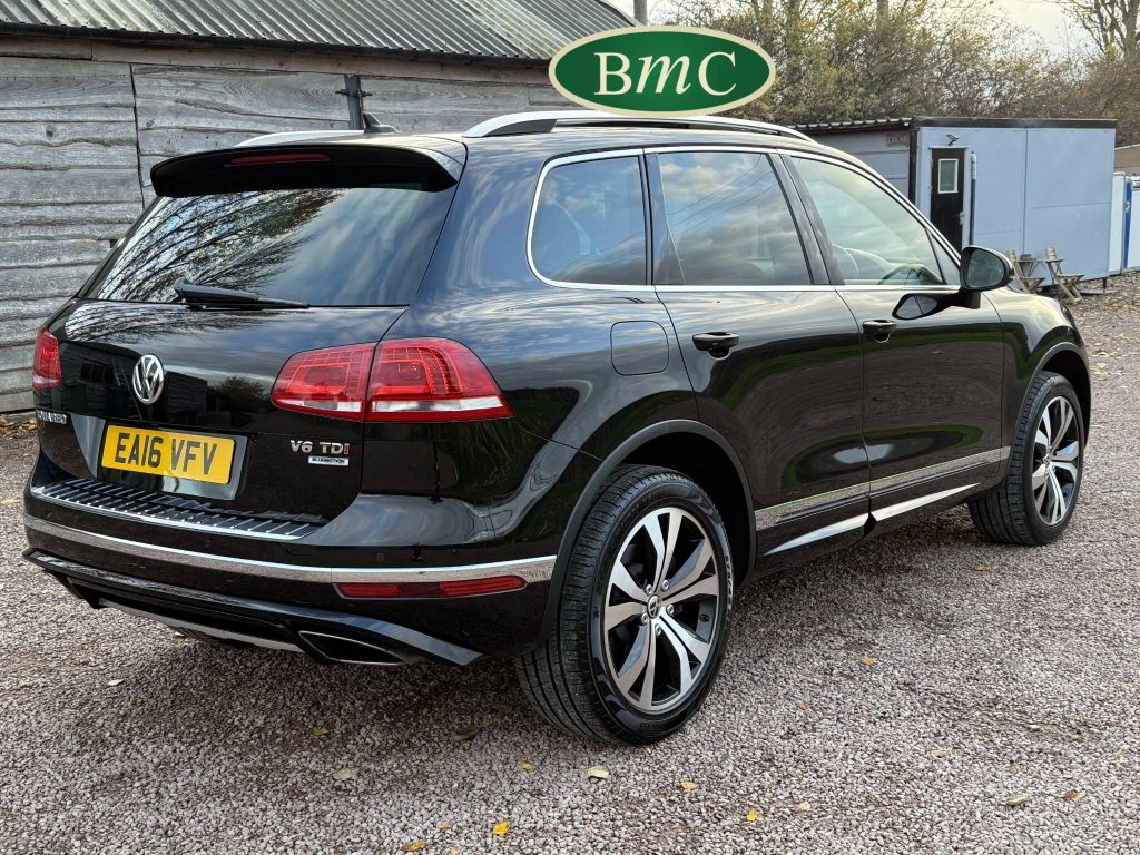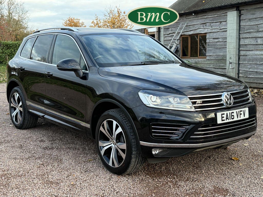 2 OWNERS FROM NEW, LAST OWNER HAS HAD THE CAR SINCE JANUARY 2017. SERVICED @ 19K, 29K, 44K, 65K, 75K & 92K. 2 NEW FRONT TYRES JUST FITTED. BOTH KEYS. This 2016 Volkswagen Touareg TDI V6 R Line boasts an exceptional service history, with its last service completed on 21st October 2025 at 92,340 miles, and an MOT valid until May 2026, offering peace of mind for its next owner. This four wheel drive, Euro 6 compliant model features a powerful 3.0 litre diesel engine and an impressive towing weight of 3500 kg. With only two previous owners, this R Line trim vehicle comes equipped with desirable features including rear parking sensors with parking assistance, an electric and sliding glass panoramic sunroof, keyless entry, and automatic dusk sensing headlights with a coming and leaving home function. Inside, you will appreciate the 2 zone electronic climate control with automatic air recirculation, ensuring a comfortable cabin environment for all occupants.The Volkswagen Touareg TDI V6 R Line offers a compelling blend of performance and practicality. Its acceleration from 0 to 62 miles per hour in just 7.3 seconds demonstrates its dynamic capability, a performance that sets it apart from many vehicles in its class. Furthermore, the generous boot space makes it an ideal choice for families or those who require ample storage for luggage or equipment. This vehicle also benefits from a low insurance group, which can contribute to lower running costs, making it an even more attractive proposition for potential buyers seeking a capable and well equipped SUV.