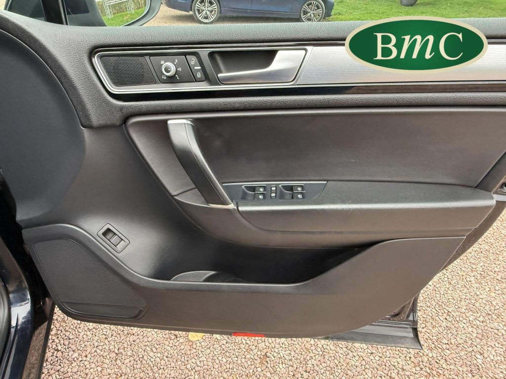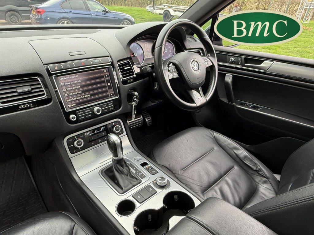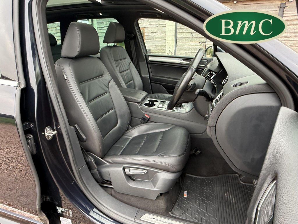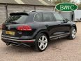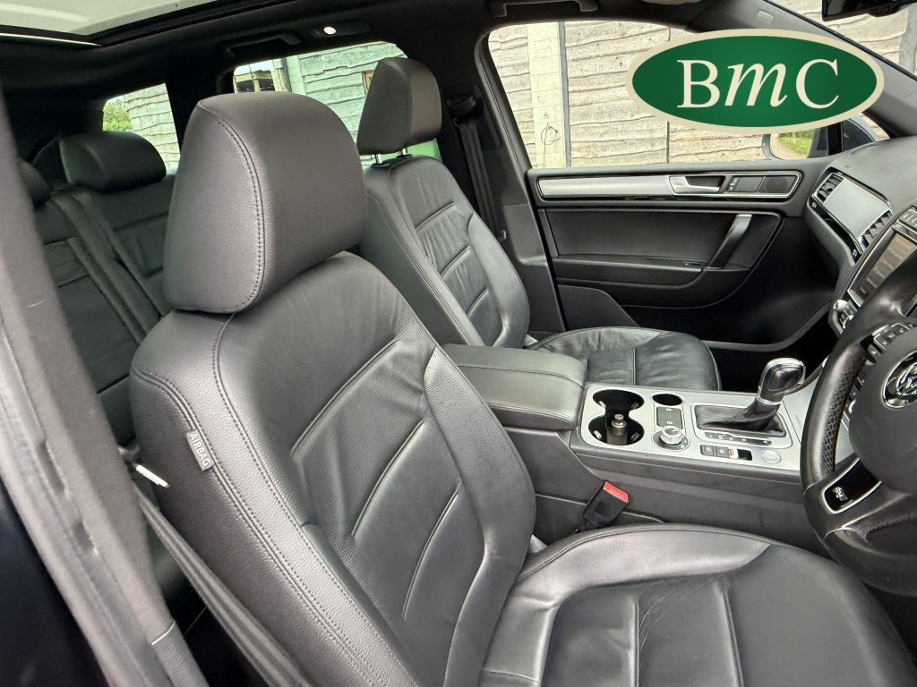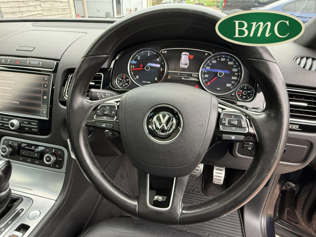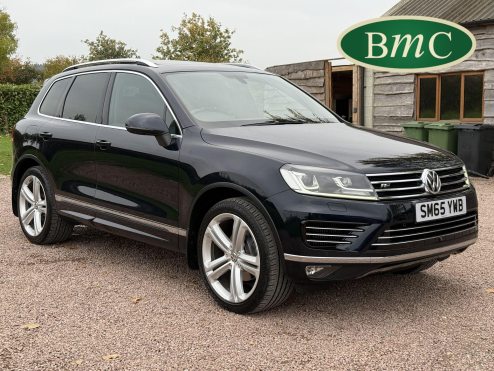 10 SERVICES, Serviced @ 10k, 20k, 31k, 35k, 50k, 61k, 64k, 70k, 76k & 79k miles. SURROUND CAMERAS. HEATED LEATHER MULTI FUNCTION STEERING WHEEL, PANORAMIC SUNROOF, 21'' ALLOY WHEELS, RETRACTABLE TOW BAR.This 2015 Volkswagen Touareg TDI V6 R-Line boasts an exceptionally low mileage for its age, having covered just 82,900 miles, and benefits from a recent service completed on 17th February 2025 at 79,606 miles. This Euro 6 compliant model features a powerful 3.0L diesel engine paired with Four Wheel Drive, offering a substantial towing weight of 2880 kg. The R-Line trim enhances the vehicle's appeal with Bi-Xenon headlights featuring a dusk sensor and coming-leaving home function, alongside front parking sensors for added convenience. Inside, you'll find heated front seats for comfort and Bluetooth telephone preparation for hands-free calls.The Touareg R-Line stands out with its impressive performance, accelerating from 0-62mph in a swift 7.3 seconds, indicating a more dynamic driving experience compared to many vehicles in its class. Its low insurance group rating also suggests lower running costs, making it an economical choice. Furthermore, the generous boot space provides ample room for luggage or equipment, a practical advantage over similarly sized SUVs.
