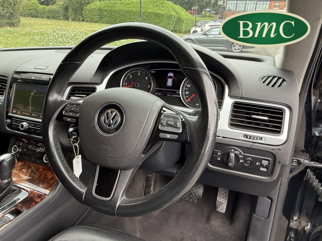 Serviced at 14k, 20k, 29k, 38k, 45k, 51k, 60k, 71k, 77k & 84k. Both Remote Keys. New Tyres.With only 87690 miles on the clock, this 2012 Volkswagen Touareg has very low mileage for its age. This SE trim variant of the Touareg is powered by a 3.0L diesel engine and features a four-wheel drive drivetrain. The vehicle has a valid MOT until March 2026, and its last service was recorded at 84446 miles. Enjoy the comfort of 2 Zone Electronic Climate Control with Automatic Air Recirculation, as well as heated front seats. Parking is made easier with front and rear parking sensors, and staying connected is simple with Bluetooth telephone preparation. Air conditioning is also included for your comfort.This vehicle boasts a large boot space, making it more practical than similar vehicles. It also falls into a low insurance group, potentially saving you money. Furthermore, it can accelerate from 0-62mph in just 7.6 seconds, which is quicker than many comparable models. With a towing weight of 3500 kg, this Volkswagen Touareg is a capable vehicle.