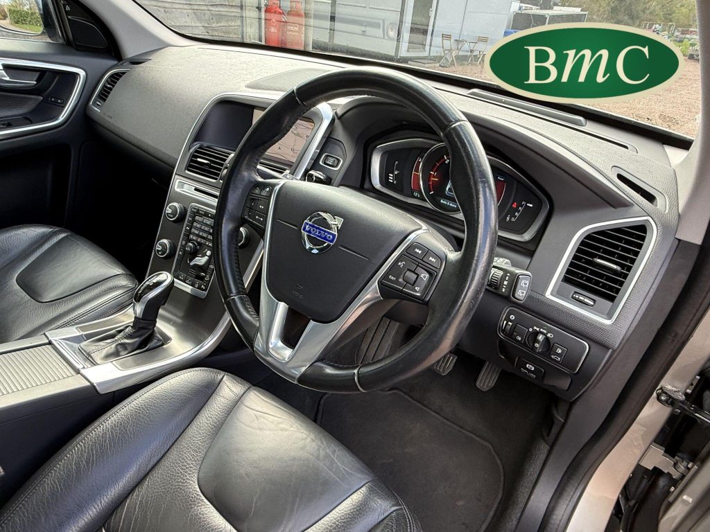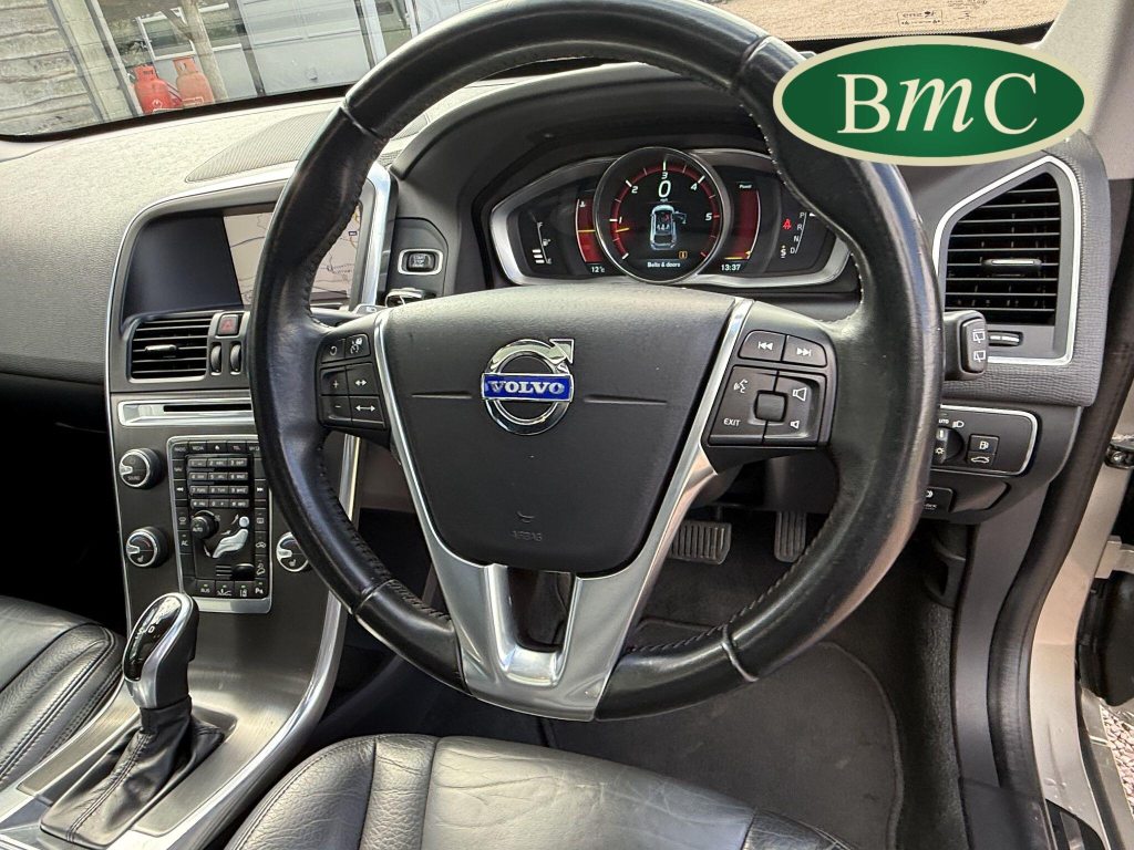 SERVICED @ 23K, 30K, 37K, 41K, 49K, 55K, 57K, 62K, 70K & 77K MILES. BOTH KEYS AVAILABLE. Panoramic Laminated Power Glass Tilt and Slide Sunroof, LDW (Lane Departure Warning) with DAC (Driver Alert Control), Metallic paint £625, BLIS (Blind Spot Information System), Family Pack, Black Leather Heated Front Seats, Satellite navigation, Dab Radio, Bluetooth.This 2013 Volvo XC60 D5 SE Lux Nav presents an exceptional opportunity with its remarkably low mileage of just 79,000 miles for a vehicle of its age. Powered by a robust 2.4 litre diesel engine and featuring a capable four wheel drive system, this XC60 is equipped with the SE Lux Nav trim, offering a refined driving experience. Notable features include a panoramic power glass tilt and slide sunroof, providing an airy cabin, alongside advanced safety systems such as Lane Departure Warning with Driver Alert Control and Blind Spot Information System with Blind Spot Assistance. The Family Pack and heated front seats further enhance comfort and practicality for all occupants.The generous boot space ensures ample room for luggage or shopping, making this XC60 a versatile choice for families and individuals alike. Its impressive acceleration, achieving 0 to 60 miles per hour in just 7.8 seconds, demonstrates a strong performance that sets it apart from many other vehicles in its class. These highlights, combined with Volvo's reputation for safety and comfort, make this XC60 a compelling option for those seeking a premium and well equipped SUV.